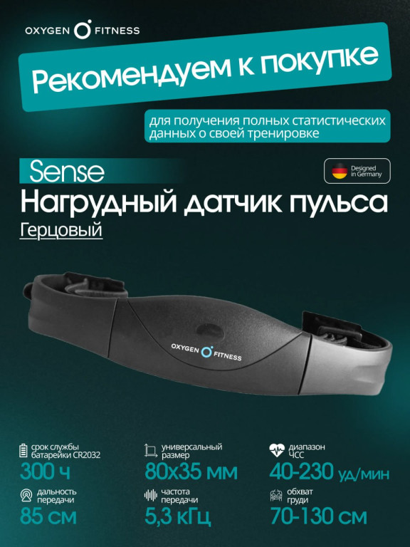 Тренировочный тренажер OXYGEN FITNESS X-CONCEPT SPORT предлагает широкий выбор программ для фитнеса - целых 16 вариантов, включая встроенные и ручной режим. Вам предоставляется возможность наслаждаться разнообразными тренировками и достигать высоких результатов благодаря этому многофункциональному устройству. Этот тренажер обеспечен мультимедийными функциями, в том числе встроенными динамиками для воспроизведения аудио файлов. Благодаря технологии Bluetooth, он интегрируется с приложениями Fitshow и Kinomap на мобильных устройствах, что позволяет вам взаимодействовать с тренировками и наслаждаться интерактивным подходом к фитнесу. Благодаря компактным размерам в сложенном и рабочем состоянии, тренажер OXYGEN FITNESS X-CONCEPT SPORT легко разместить в вашем доме. Кроме того, он оснащен транспортировочными роликами и функцией Smart Fold для ультракомпактного складывания, обеспечивая удобство в хранении и перемещении устройства. У вас есть возможность начать свое путешествие к здоровью и фитнесу прямо у себя дома, а 5-летняя гарантия на OXYGEN FITNESS X-CONCEPT SPORT станет вашим верным спутником. С максимальным весом пользователя в 130 кг этот тренажер станет идеальным выбором для самых разнообразных пользователей.*ХарактеристикиТипДля дома ВидКомпактная Страна БрендаГермания Вес пользователя кг.130 ?Система нагрузкиМагнитная: с ручным изменениям нагрузки, Электромагнитная: с электронным изменениям нагрузкиЭлектрическая ?Ширина полотна см.Чем шире полотно, тем больше комфорт при беге51 ?Длина полотна см.Чем выше человек, тем длинее должно быть полотно140 Полотно1,6 мм, многослойное коммерческое Habasit NVT-256 Постоянная мощность двигателя (л.с.)3.5 Пиковая мощность двигателя (л.с.)5 Дека (мм.)18 мм Материал декиМДФ, парафинированная Измерение пульсаЕсть, при покупке кардиодатчика ?Система амортизацииДаннас система снижает нагрузку на суставы и риск получения травмЕсть Тип амортизации6 профессиональных эластомеров VCS™ ?Количество программФункция личного тренера, которая изменяет нагрузку и другие параметры для наибольшего эффекта8 Подсветка дисплеяБелая Дисплей5 LED дисплев c белой индикацией Показания компьютеравремя, скорость, дистанция, уровень наклона, калории, пульс, шаги, профиль программы ?ДинамикиДинамики для воспроизведения музыки и др.Есть ?BLUETOOTHДля использования функции скачайте приложение BLUETOOTH APP через App Store или Google PlayЕсть Wi-FiНет USBНет ?Транспортировочные роликиДля перемещения тренажера в место храненияЕсть ?Изменение угла наклонаИзменение наклона полотна/рампы, имитирует подъем в горуЭлектрическая ?Компенсаторы неровности полаРегулировка тренажера при невроной поверхностиЕсть Угол наклона1 - 12% КонструкцияСкладная Скорость (км/ч)18 ?ВентиляторВентилятор для охлаждения во время тренировкиНет ?Подставка для бутылкиОтсек на тренажере, для хранения шейкера или спортивной бутылки.Нет ?Беспроводной кардио датчикДатчик предназначен для измерения сердечного ритма, который удобно крепится на грудь.Приобретается отдельно ?Подставка планшета/телефонаПодставка для планшета, телефона, книги и др.Есть ?Воспроизводите реальные пробежкиВоспроизведение реальной пробежки через Google Maps™Есть Особенностьультракомпактное быстрое складывание (smartFOLD™), легкое перемещение в двух проекциях (smartMOVE™), беговая дорожка прекратит работать, если в течение 30 секунд не будет посту
