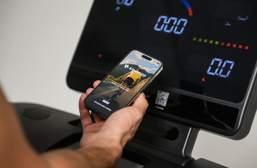 15 встроенных программ: 12 автопрограмм, 3 пользовательские, функция жироанализатора. Синхронизация с Fitshow, Kinomap, Zwift. Контроль пульса — сенсоры на поручнях или кардиопояс.