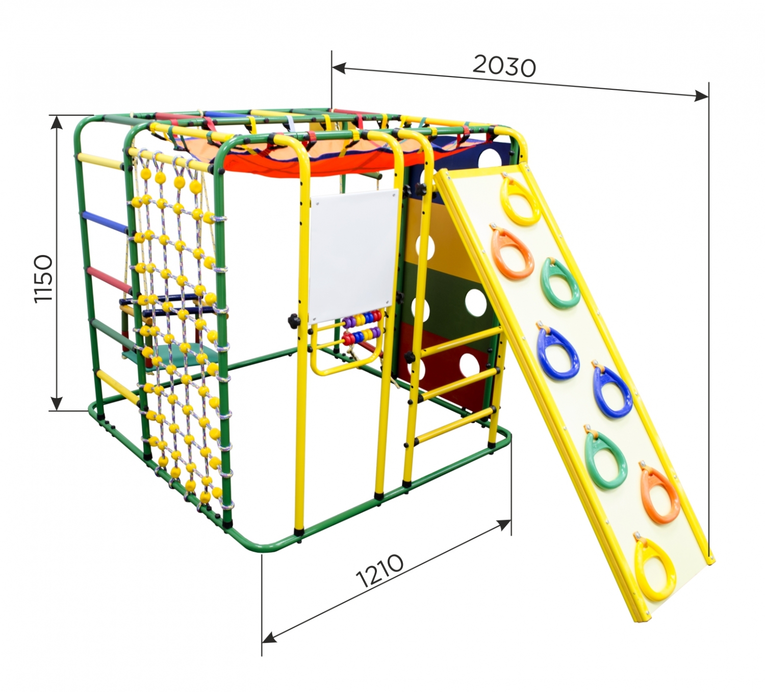 Ширина горки составляет 40 см, а длина - 1 м 31 см. Этот аттракцион подойдёт для семей с несколькими детьми разного пола и возраста. Установите его на участке, и каждый ребёнок найдёт в нём своё увлечение. Кубик - отличное развлечение для детей, пришедших на день рождения или просто в гости. Расположите его на улице или на даче, чтобы дети могли насладиться играми на свежем воздухе и получить ещё больше пользы от активного времяпрепровождения. Кубик - это надежный и устойчивый комплекс, который прекрасно подойдет для активных компаний. Металлический каркас диаметром 25мм обеспечивает повышенную жесткость, а крепления на нем укреплены сквозными болтами через силовые скобы, что делает конструкцию надежной и прочной. Внутрь кубика можно установить маты, чтобы придать ему дополнительную интересность и обеспечить безопасность. Для защиты от царапин шляпки болтов прикрыты колпачками, а торцы перекладин покрыты заглушками. На ДСК Кубике у детей открывается возможность погрузиться в захватывающие приключения и игры, способствующие развитию. Чтобы предотвратить скольжение и сделать конструкцию более комфортной, лестница обтянута резиной. Дополнительное оборудование надежно закреплено, чтобы избежать возможности его разворачивания шаловливыми ручками. Для создания красоты и эстетики доступны надежные ДСК различных цветов, сертифицированные по качеству. Выберите модель, которая подходит под интерьер, и не беспокойтесь о надежности. Максимальная нагрузка на навесное оборудование составляет 80 кг. Масса веса на стальной раме составляет 100 килограмм.*ХарактеристикиТипИгровой комплекс ВидНапольный Страна БрендаРоссия Вес пользователя кг.100 Возраст1+ Комплектация детского комплексаБаскетбольное кольцо, Веревочная лестница, Гамак, Горка, Качели, Мольберт, Сеть для лазания, Скалодром, Тарзанка ДополнительноДопустимая нагрузка на навесное оборудование: 80 кг Материалметалл, ПВХ, резина ТрубаДиаметр трубы: 25 мм, Толщина металла: 1.5 мм СтупенькиПВХ Особенностьигровая панель с отверстиями КаркасМеталл ГабаритыВысота: 115 см; Длина комплекса: 121 см (по горке - 242 см, по скалодрому с кольцами - 203 см); Ширина комплекса: 121 cм; Занимаемая площадь: 121 х 121 см Размер упаковки в см (Д*Ш*В)1 место 127 х 28 х 12 см; 2 место: 132 х 42 х 12 см Диаметр ступени2.7 см Ширина ступени40 см Размер горки131 x 40 см Вес изделия кг47.4 Вес в упаковке кг48 Гарантия1 год ПроизводительРоссия ИмпортерООО "Централ Спорт" г. Минск 220012, ул.Чернышевского 8 каб. 23 -