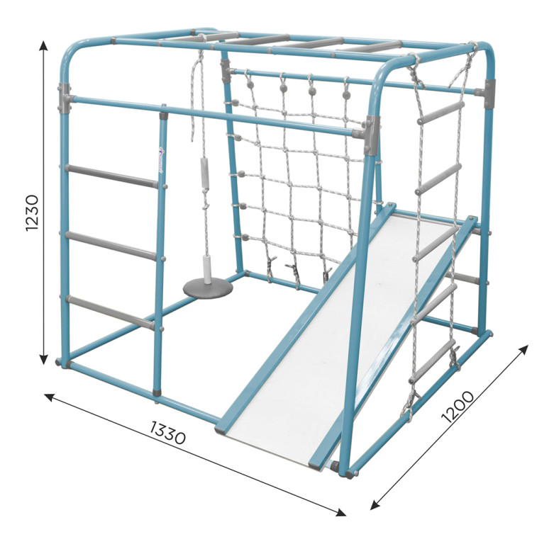 Детские комплексы под названием "ДК" предназначены для детей от 3 лет, чтобы они могли активно проводить время, занимаясь играми. Эти комплексы представляют собой спортивно-игровые площадки для самых маленьких, где дети могут играть и развиваться. Ваша квартира может стать настоящим игровым раем для детей, где они смогут кататься на качелях, лазать по веревочным лестницам и спускаться с горок, не покидая дома. Полноценная игровая площадка прямо у вас дома - это удивительная возможность для детей провести время с пользой и увлечением.*ХарактеристикиТипИгровой комплекс ВидНапольный Страна БрендаРоссия Вес пользователя кг.80 Возраст2+ Комплектация детского комплексаВеревочная лестница, Горка, Рукоход, Сеть для лазания, Тарзанка ДополнительноДопустимая нагрузка на навесное оборудование: 80 кг Материалметалл ТрубаДиаметр трубы: 32 мм, Толщина металла: 2 мм СтупенькиПВХ ОсобенностьКомплекс можно установить дома или на улице, Навесная горка легко устанавливается на разную высоту, Крепление лестницы к каркасу покрыто заглушками для защиты от ссадин КаркасМеталл ГабаритыВысота: 123 см; Ширина комплекса: 133 см; Занимаемая площадь: 120 х 133 см Размер упаковки в см (Д*Ш*В)134 х 45 х 13 см Диаметр ступени3 см Ширина ступени44 см Шаг ступени24 см Вес в упаковке кг34.6 Гарантия1 год ПроизводительРоссия ИмпортерООО "Централ Спорт" г. Минск 220012, ул.Чернышевского 8 каб. 23 -
