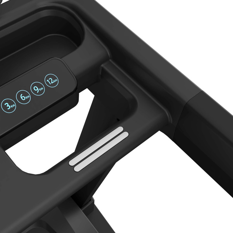 Инновационная кнопка-диммер обеспечивает быстрое и удобное переключение режимов отображения информации. Панель управления оснащена кнопками быстрого доступа для изменения скорости, угла наклона, выбора программ и управления стартом и остановкой тренировки.