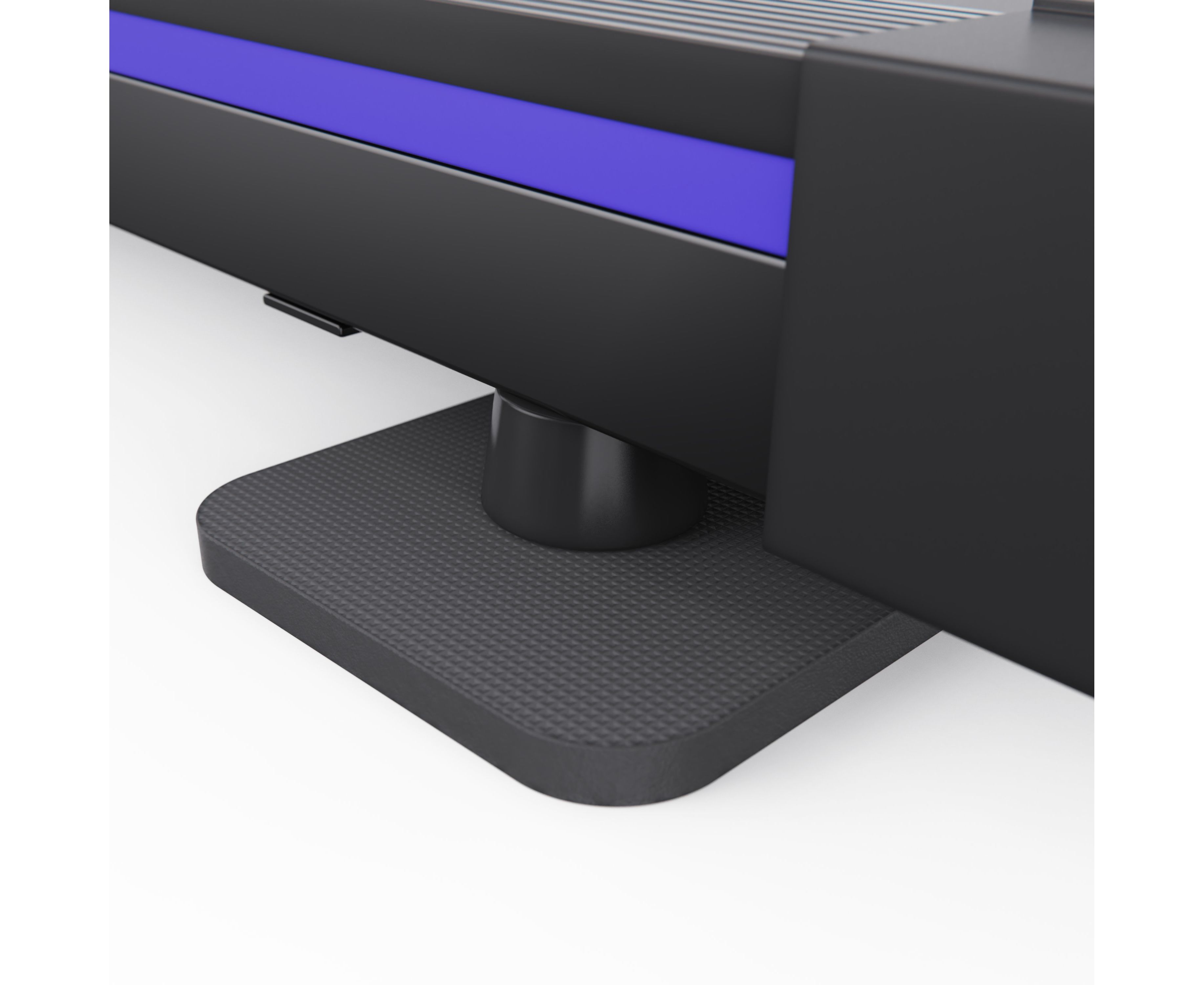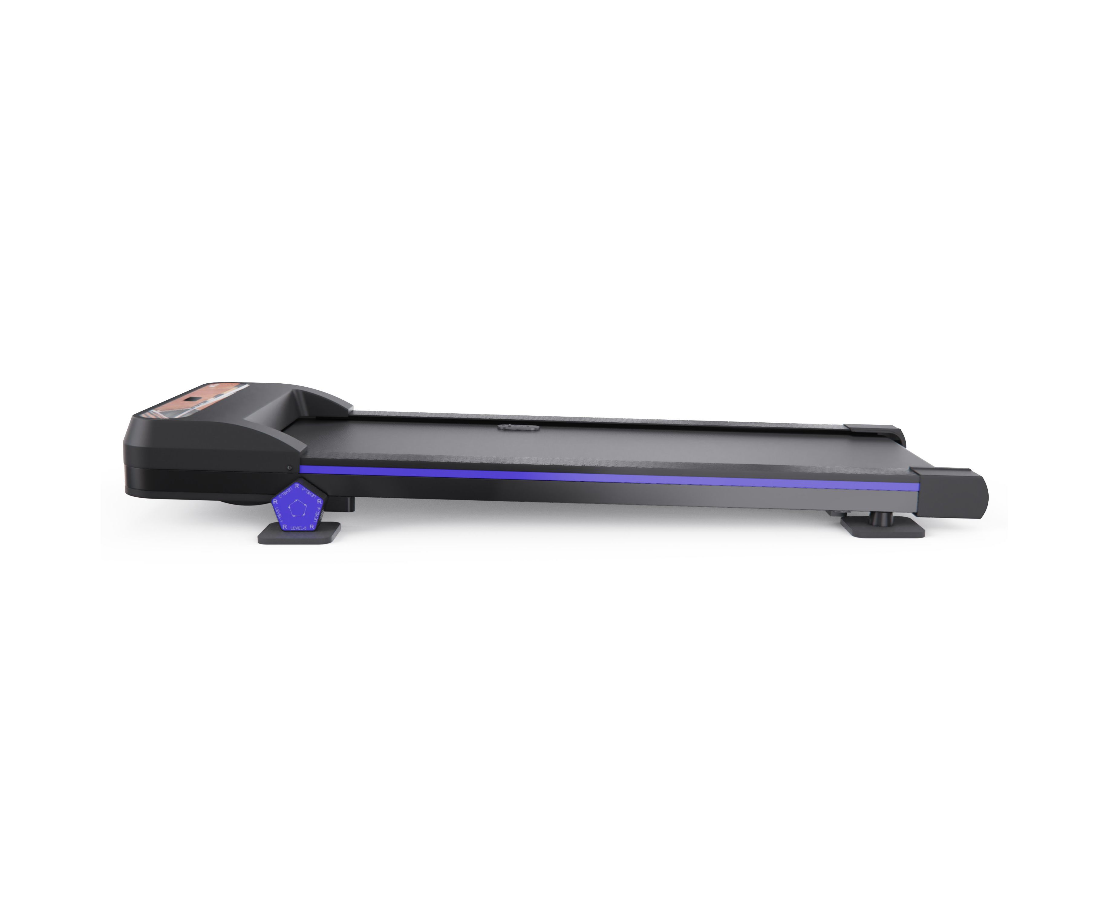 Модель оснащена двигателем мощностью 0.75 л.с. со скоростным диапазоном от 1 до 6 км/ч. Механическая система регулирует угол наклона по 5 уровням. Размер бегового полотна — 93 х 36 см. В комплект входят 4 антискользящие подкладки для устойчивости и защиты пола.