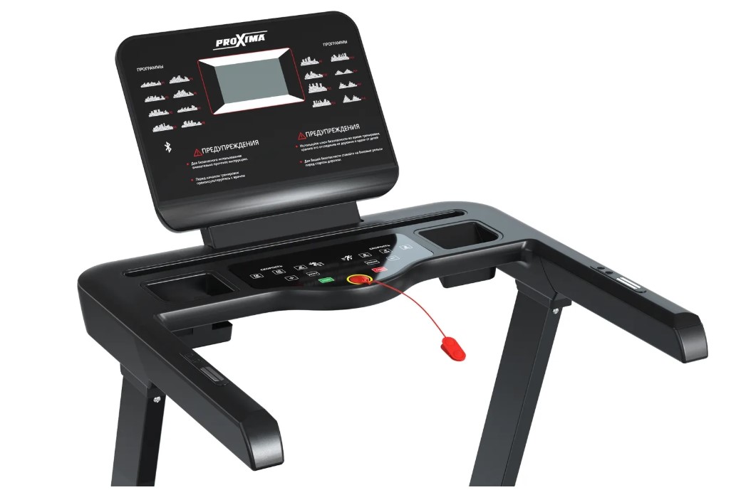 Гидравлическая система складывания «Just Click»: легко складывается, при раскладывании плавно опускает полотно в последней фазе для безопасности. Транспортировочные ролики. Рама из высокопрочной стали, усиленные соединения, предельная нагрузка — 140 кг.ХарактеристикиТипДля дома ВидКомпактная Страна БрендаРоссия Вес пользователя кг.140 ?Система нагрузкиМагнитная: с ручным изменениям нагрузки, Электромагнитная: с электронным изменениям нагрузкиЭлектрическая Управление на поручняхКнопки регулировки скорости и наклона на рукоятках ?Ширина полотна см.Чем шире полотно, тем больше комфорт при беге45 ?Длина полотна см.Чем выше человек, тем длинее должно быть полотно130 МоторLEESON (США), КПД — 97 % Постоянная мощность двигателя (л.с.)2.25 Пиковая мощность двигателя (л.с.)3.5 Дека (мм.)14 Измерение пульсаЕсть Рамаиз высокопрочной стали Расположение датчиков пульсаНа рукоятках Пульсозависимые программыЕсть ?Система амортизацииДаннас система снижает нагрузку на суставы и риск получения травмЕсть Тип амортизацииМногозонная ?Количество программФункция личного тренера, которая изменяет нагрузку и другие параметры для наибольшего эффекта40 Подсветка дисплеяБелая ДисплейLCD Показания компьютератекущая скорость, пройденное расстояние, прошедшее время, сожжено калорий, пульс, программный профиль ?ДинамикиДинамики для воспроизведения музыки и др.Есть ?BLUETOOTHДля использования функции скачайте приложение BLUETOOTH APP через App Store или Google PlayНет Wi-FiНет USBЕсть ?Транспортировочные роликиДля перемещения изделия в место храненияЕсть ?Изменение угла наклонаИзменение наклона полотна/рампы, имитирует подъем в горуМеханическая ?Компенсаторы неровности полаРегулировка изделия при невроной поверхностиЕсть Угол наклона3 уровня КонструкцияСкладная ДополнительноПотребляемая мощность 0,58 кВт/ч Скорость (км/ч)16 ?ВентиляторВентилятор для охлаждения во время тренировкиНет ?Подставка для бутылкиОтсек на тренажере, для хранения шейкера или спортивной бутылки.Есть ?Беспроводной кардио датчикДатчик предназначен для измерения сердечного ритма, который удобно крепится на грудь.Приобретается отдельно ?Подставка планшета/телефонаПодставка для планшета, телефона, книги и др.Есть СертификатыCE, ЕАС, RoHS ОсобенностьГидравлическая система складывания Спецификации программпульсозависимые и целевые, также можно воспользоваться ручным режимом настройки программ. РазъемыUSB, AUX Питаниеот сети 220В Габариты157х74х139 см Размер упаковки в см (Д*Ш*В)175х76,5х29 Размер в сложенном виде94х74х140,5 см Вес изделия кг51 Вес в упаковке кг59 Гарантия2 года ПроизводительКитай ИмпортерООО "Централ Спорт" г. Минск 220012, ул.Чернышевского 8 каб. 23 -