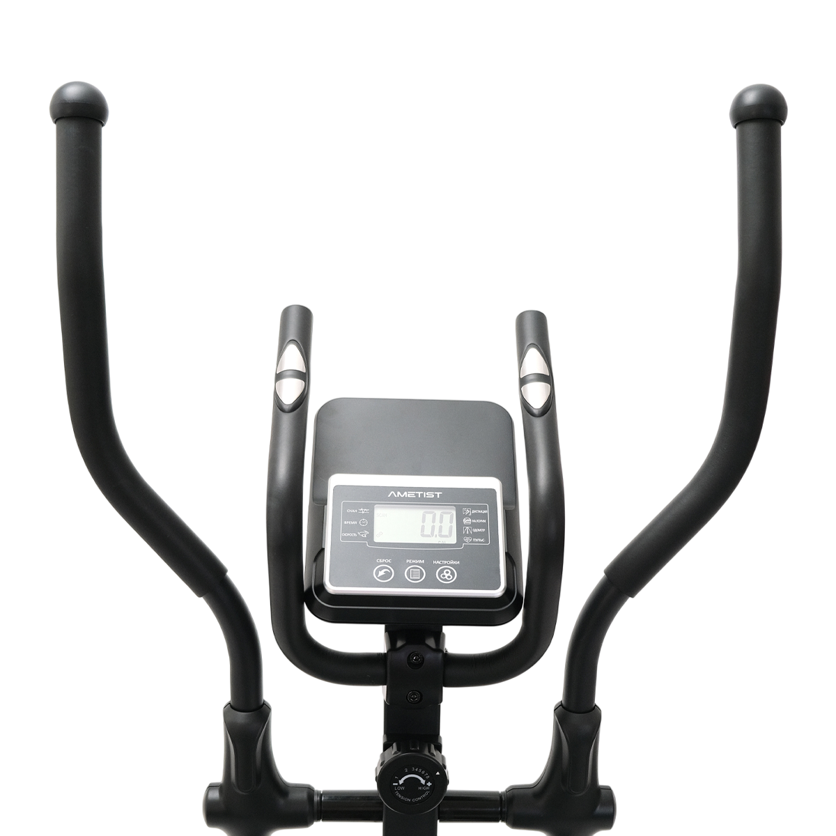 Эллиптический тренажер AMETIST Elbrus — это домашний кардиотренажер, созданный для эффективных и безопасных тренировок. Его основная цель — мягкое сжигание калорий, укрепление мышц, ускорение метаболизма и поддержка сердечно-сосудистой системы.