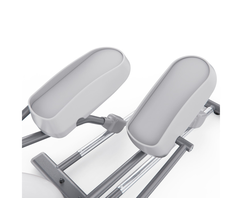 Тренажёр оснащён магнитной системой нагрузки с механической регулировкой (8 уровней). Увеличенный инерционный маховик весом 15 кг гарантирует плавный и стабильный ход. Длина шага составляет 51 см, что обеспечивает естественную амплитуду движений для пользователей разного роста. Педали имеют нескользящее покрытие для безопасности.