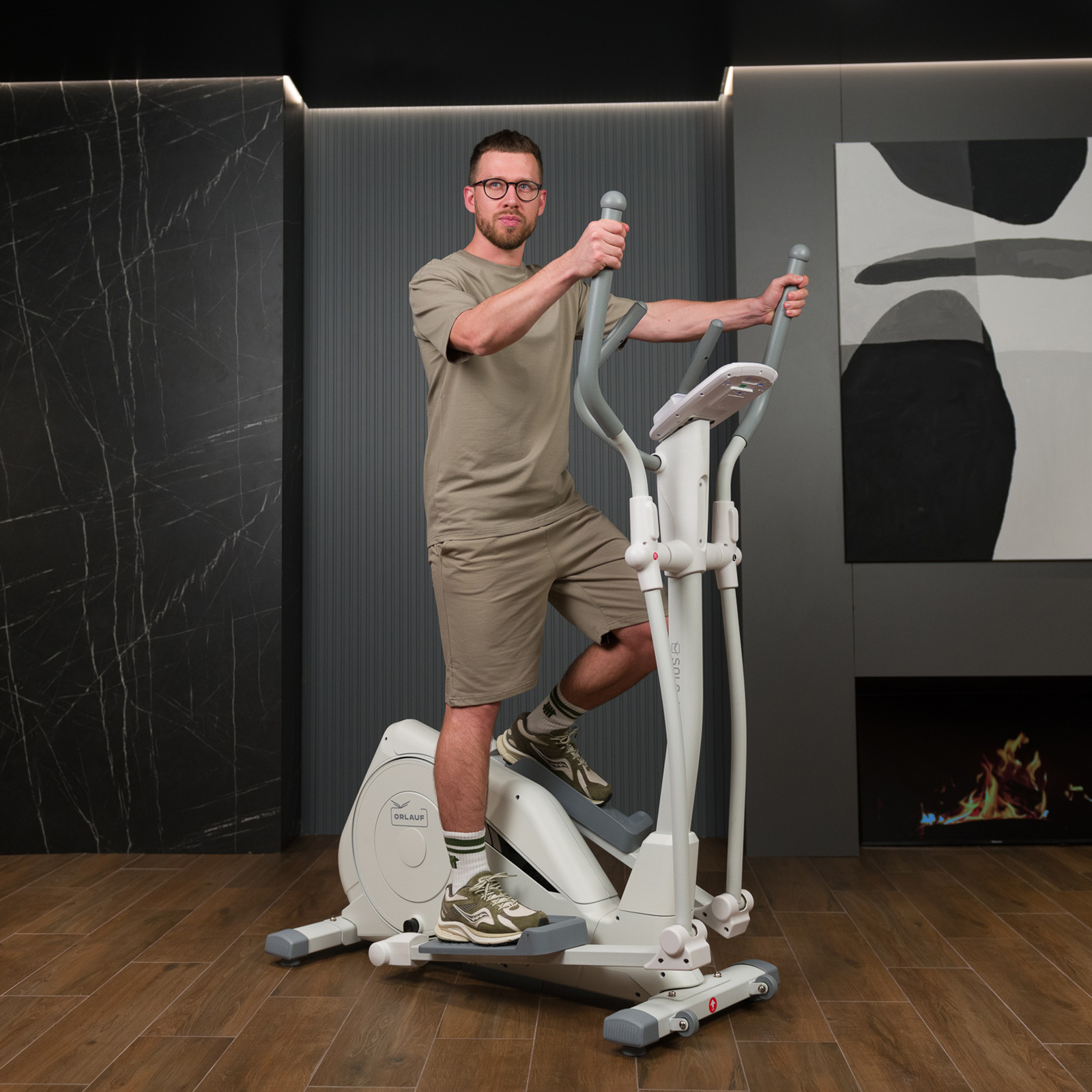Orlauf Solo M — это эллиптический тренажер с заднеприводной компоновкой и магнитной системой сопротивления, предлагающий абсолютную автономию. Отсутствие необходимости в подключении к сети открывает неограниченные возможности для его размещения в любом сегменте жилого пространства.