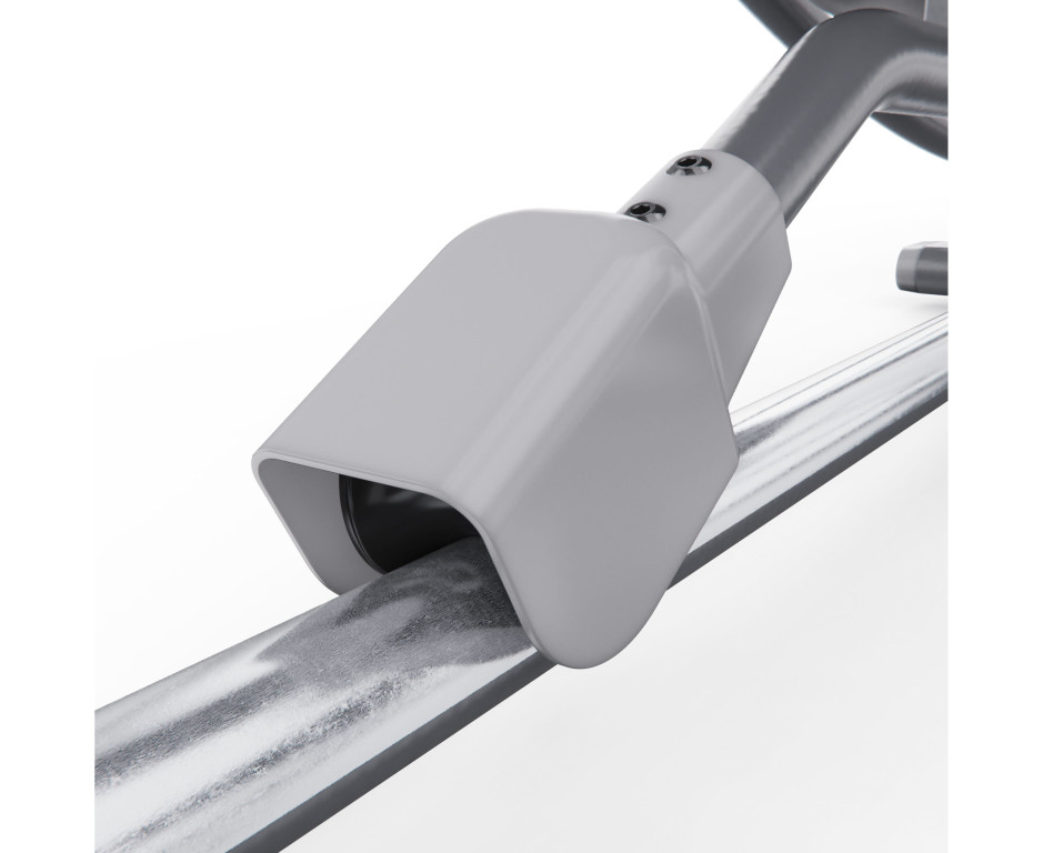 Тренажёр оснащён электромагнитной системой нагрузки с электронной регулировкой сопротивления (32 уровня). Увеличенный инерционный маховик весом 15 кг гарантирует плавный и стабильный ход. Длина шага составляет 51 см, что обеспечивает естественную амплитуду движений для пользователей разного роста. Педали имеют нескользящее покрытие для безопасности.