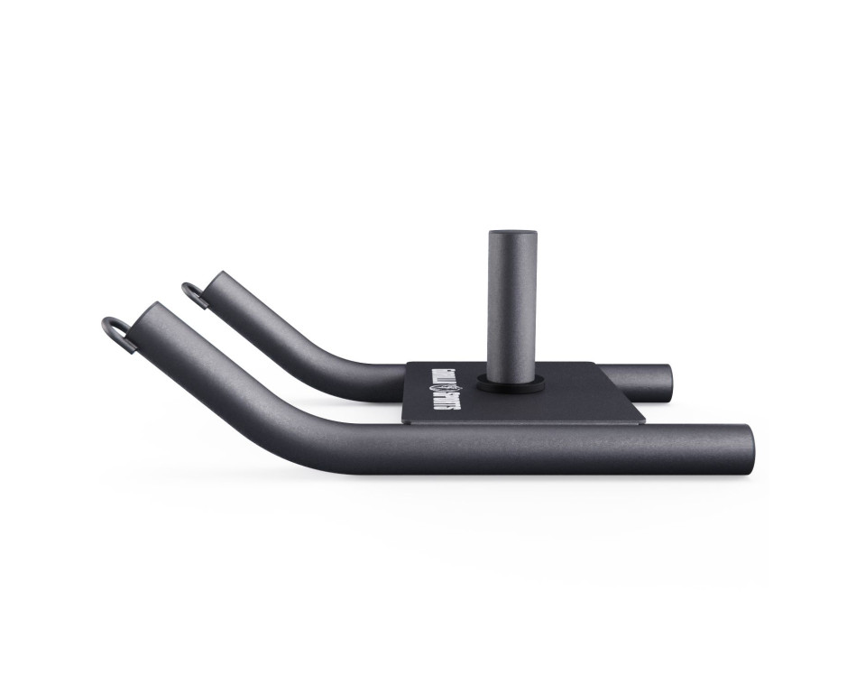 Конструкция рассчитана на нагрузку до 300 кг. Плоское дно и закруглённые края позволяют использовать сани на разных покрытиях — от резинового пола в зале до газона или асфальта на улице. Посадочные места под диски длиной 182 мм, диаметр 42 мм. Вокруг них сделаны выступы: блины фиксируются надёжно, но переставлять их удобно и быстро.