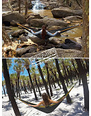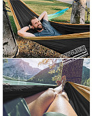 Кресло-гамак - относительно новый вид гамаков, отлично подходит для релакса, качаясь на нем, вы сможете максимально сосредоточиться на чтении своей любимой книги, или работе на ноутбуке. Использовать его можно не только как кресло-качалка но и как обычный гамак, откинуться назад и наблюдать за небом.