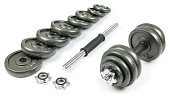 Диски: 0.5 кг х 6шт, 1.25 кг х 6 шт, 2.5 кг x 4шт, - 5 кг х 4шт