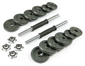 Диски: 0.5кг х 6шт, 1.25кг х 6шт, 2.5кг х 4шт, 5кг х 4шт