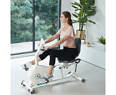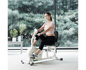 - Снижение нагрузки на позвоночник. Спина плотно прижата к эргономичной спинке. Это единственный кардиотренажер, на котором можно заниматься людям с проблемами опорно-двигательного аппарата.