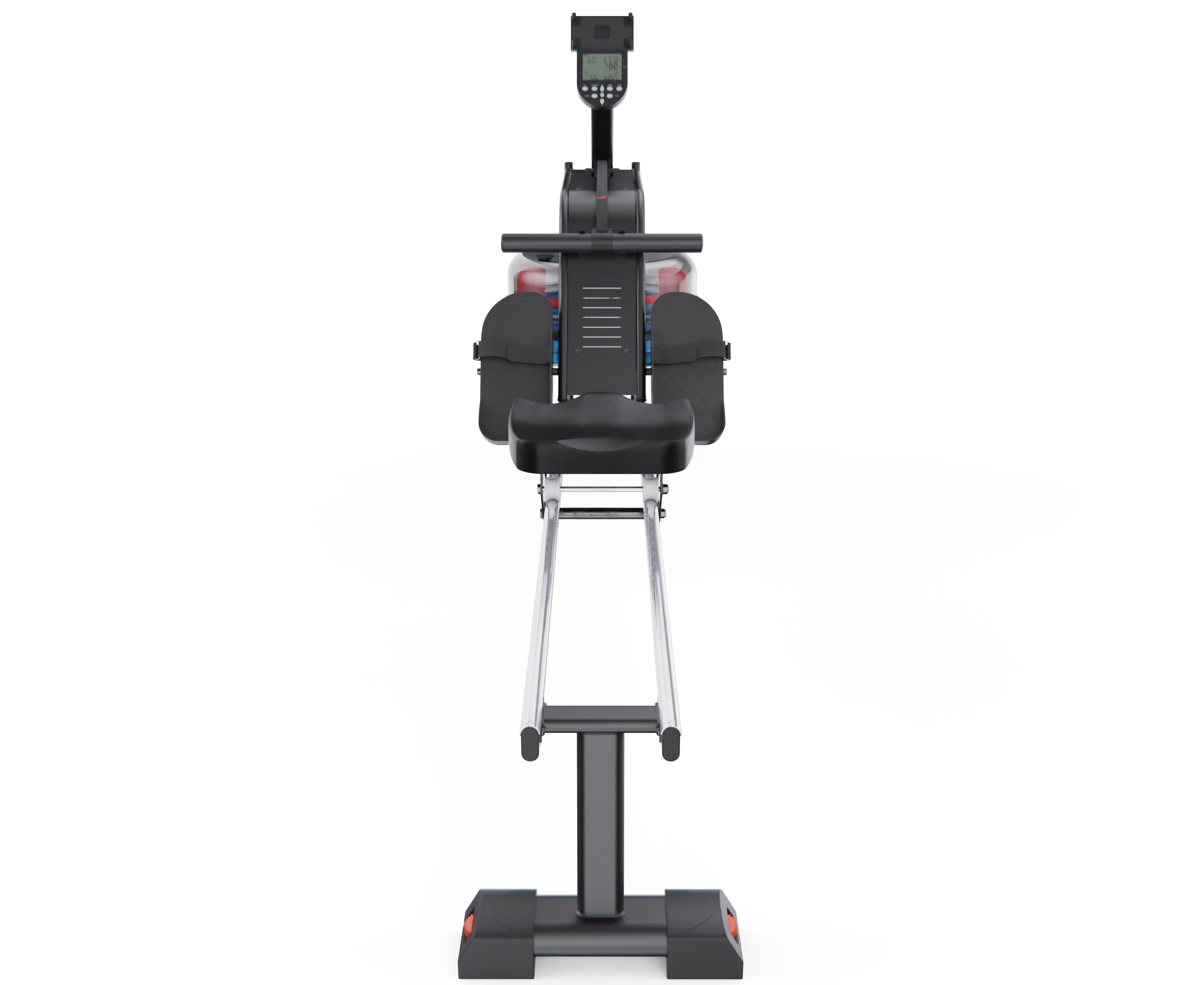 Водное сопротивление создается вращением лопастей в резервуаре с водой, имитируя реальную греблю. Предусмотрено 6 уровней нагрузки, которые регулируются объемом воды. Ход плавный, с естественным нарастанием усилия.