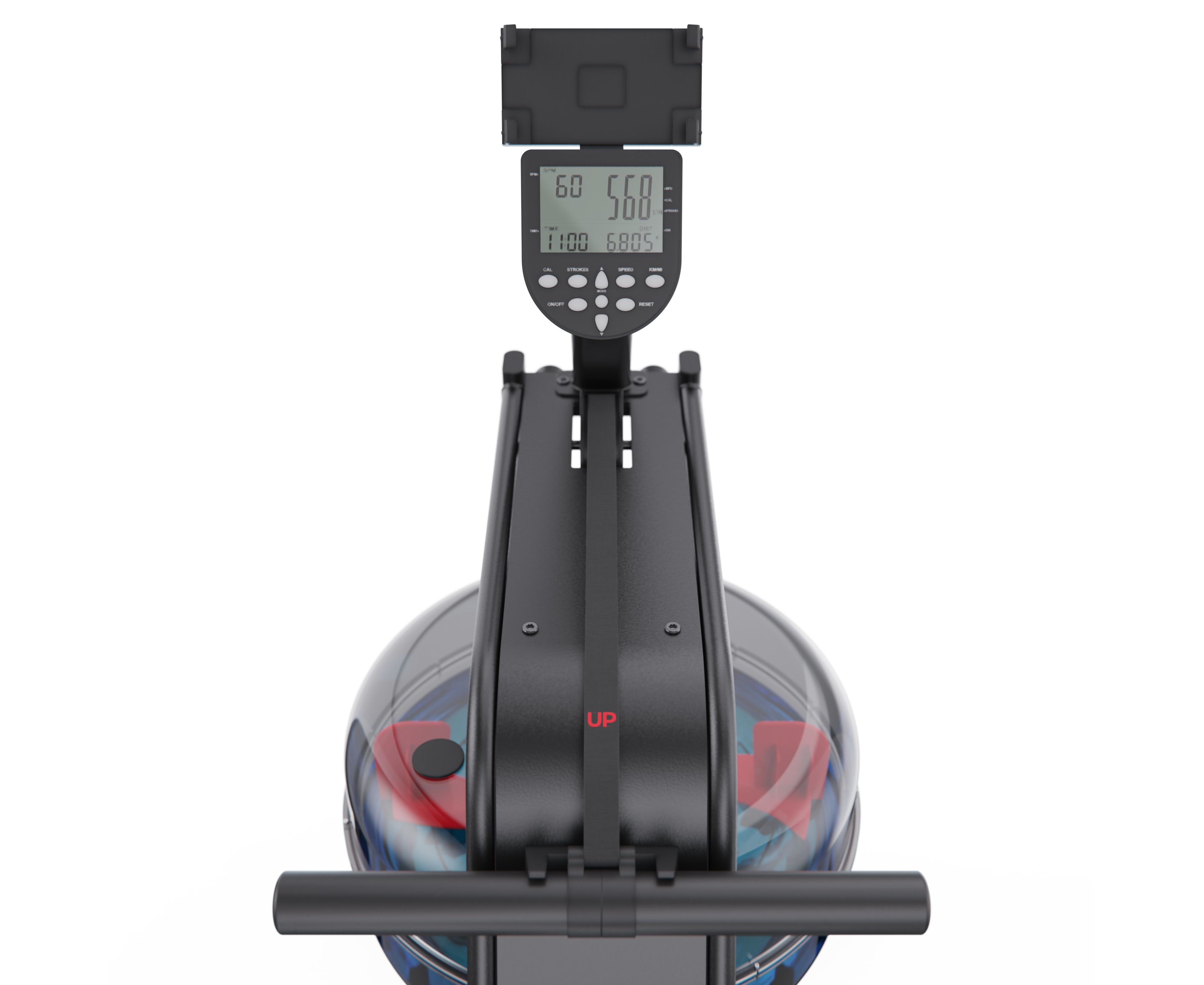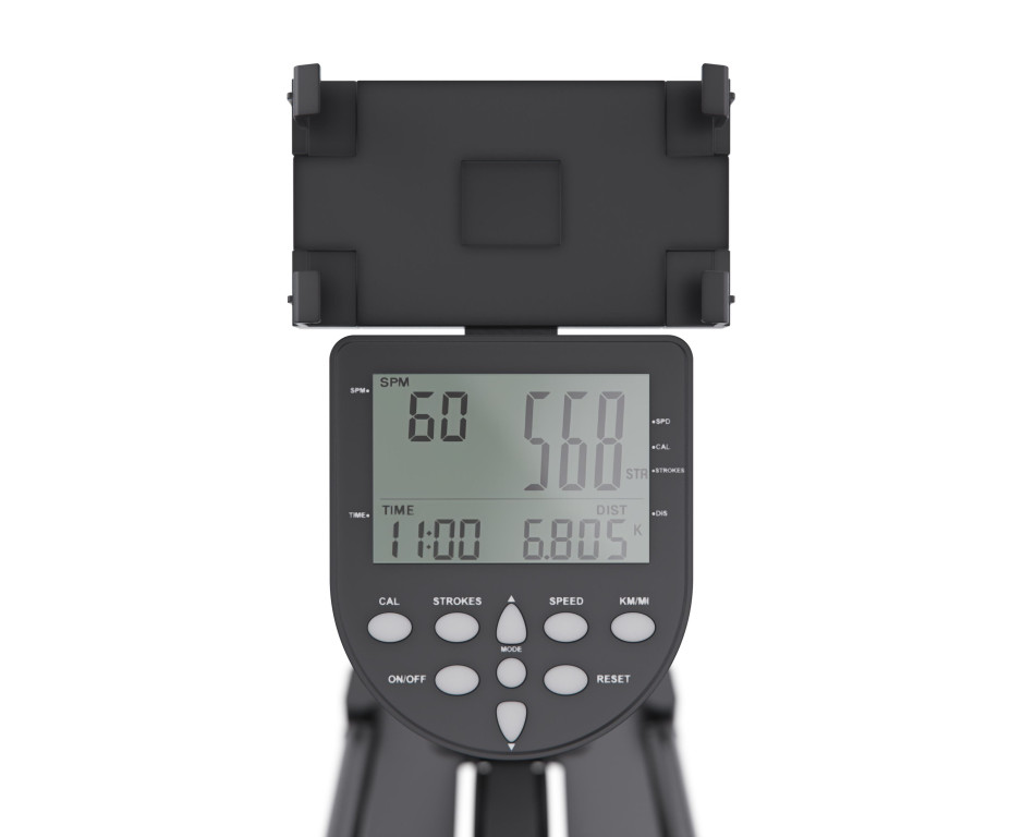 На LCD-дисплее отображаются калории, дистанция, скорость и общее количество гребков. Питание от двух батареек типа AA, входящих в комплект. Встроенный Bluetooth позволяет подключаться к приложениям FITLOG и KINOMAP для отслеживания статистики и участия в онлайн-тренировках.
