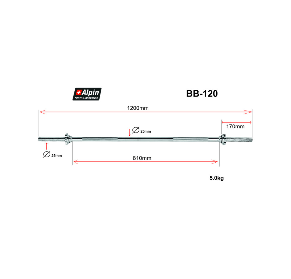 Диаметр грифа составляет 26 мм, это один из самых популярных размеров, поэтому подобрать подходящие диски не составит труда. Длина изделия равна 120 см, он будет удобен для спортсменов среднего роста, а также предпочитающих чаще использовать узкий, а не широкий хват.