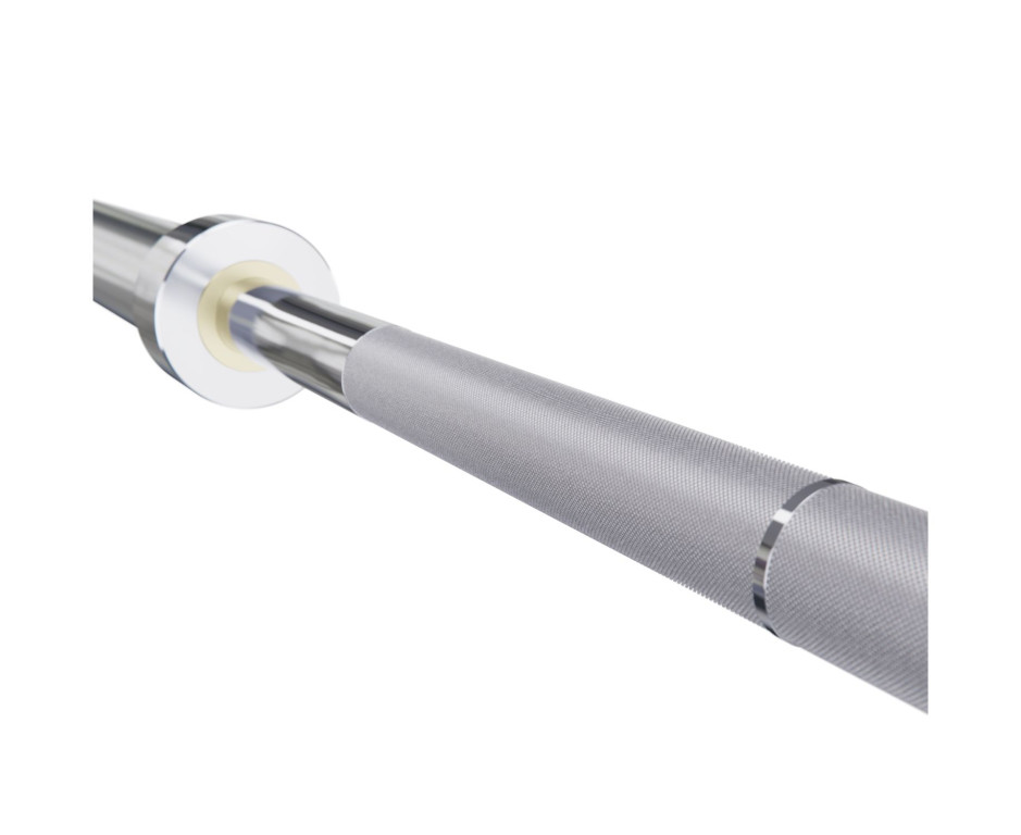 Особенностью грифа является конструкция со стальной втулкой и четырьмя подшипниками. Эта система снижает инерцию при резких движениях (например, при рывке), делая работу с весом более плавной и контролируемой.
