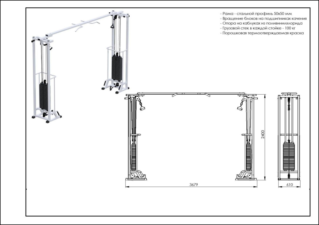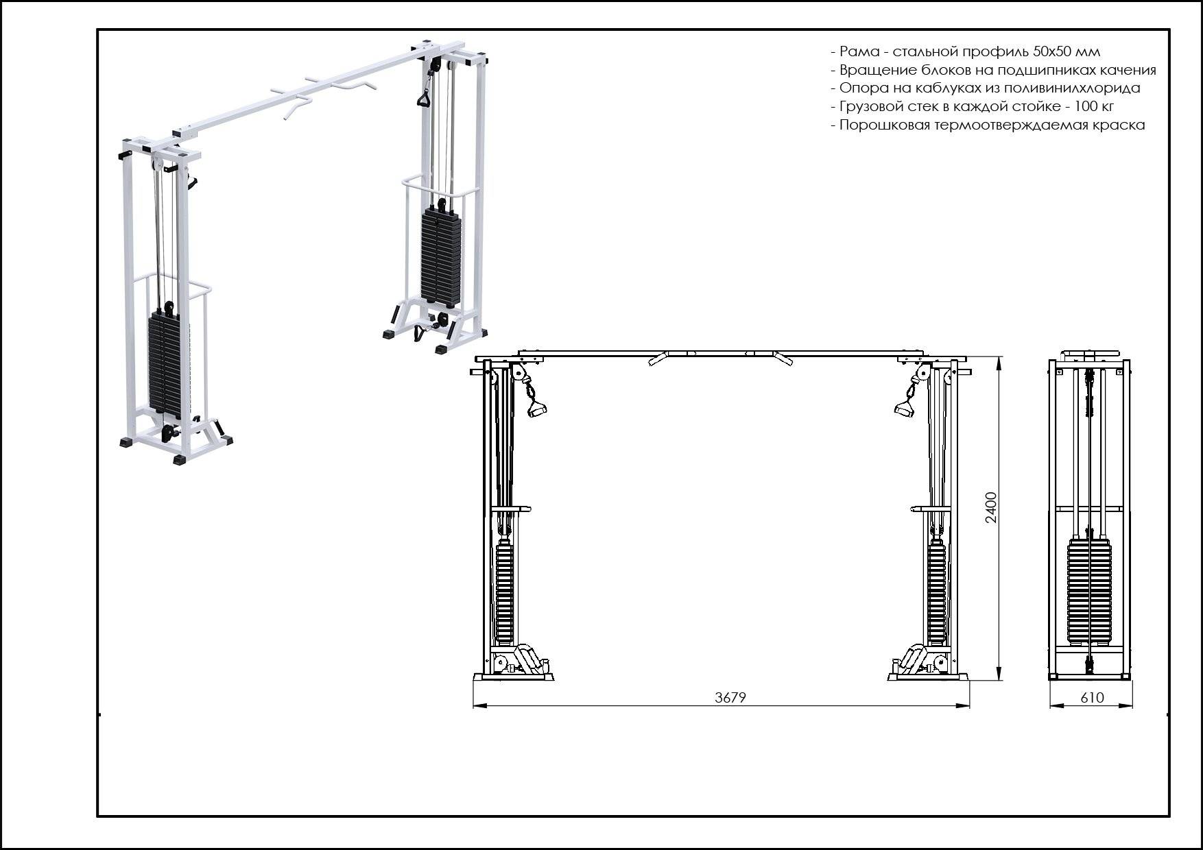 Грузоблочный тренажер с турником для коммерческого использования Central Sport AR086.2х2400 (стек 2х100 кг)
