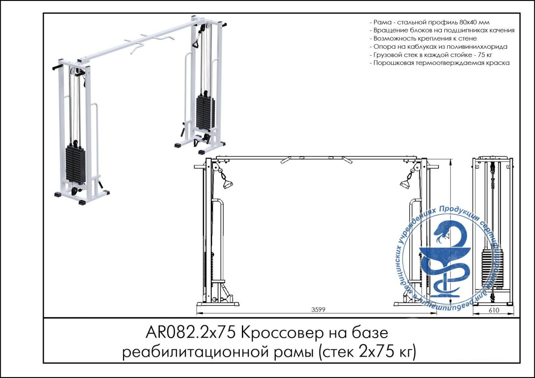 Кроссовер для тренажерных залов Central Sport AR082.2х75 (на базе реабилитационной рамы, стек 2х75кг)