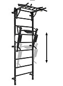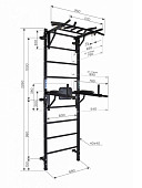 Габариты: Высота: 226 см; Ширина комплекса: 68 см; Занимаемая площадь: 79 х 95 см; Глубина брусьев: 89 см