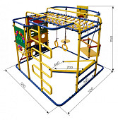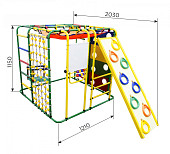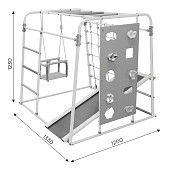 Габариты: Высота: 115 см; Длина комплекса: 121 см (по горке - 242 см, по скалодрому с кольцами - 203 см); Ширина комплекса: 121 cм; Занимаемая площадь: 121 х 121 см