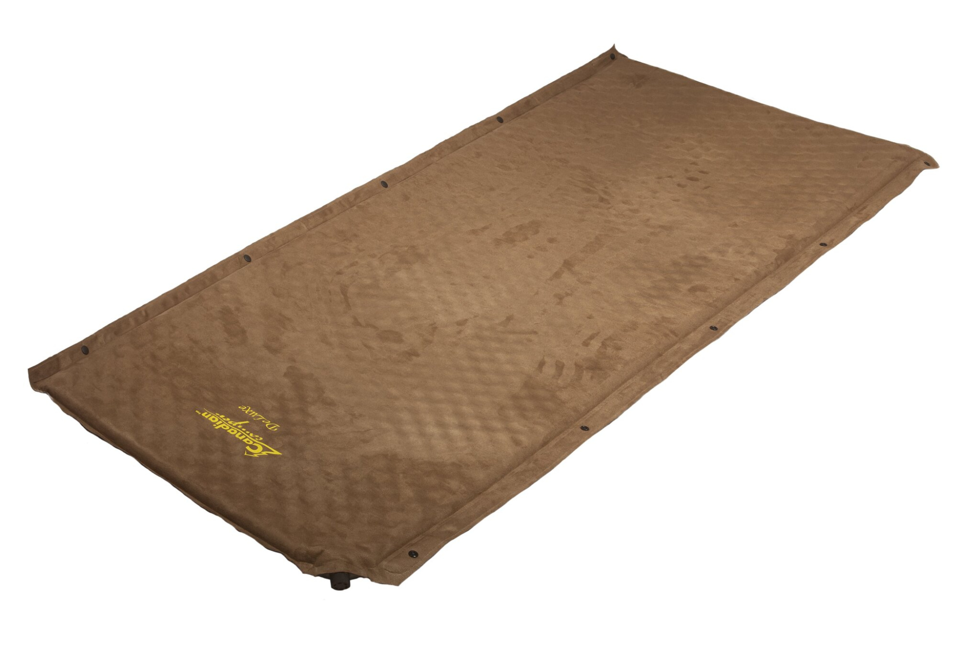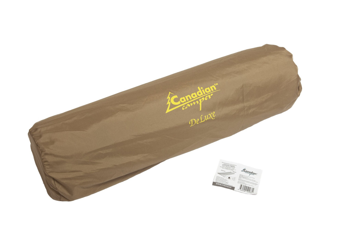Ковёр Canadian Camper выполнен из приятного на ощупь материала Micro Suede (искусственная замша) и дополнен нижним противоскользящим слоем — коврик не ездит по полу и не сбивается. Клапан сделан из бронзы. Благодаря пластиковым кнопкам по длинной стороне, ковёр можно состегнуть с любыми самонадувающимися ковриками Canadian Camper серий Comfort и De-Lux. Размер в разложенном виде 2000×660×30 мм, вес 1,71 кг, в сложенном — 66×11 см. Выдерживает нагрузку до 140 кг.ХарактеристикиТип