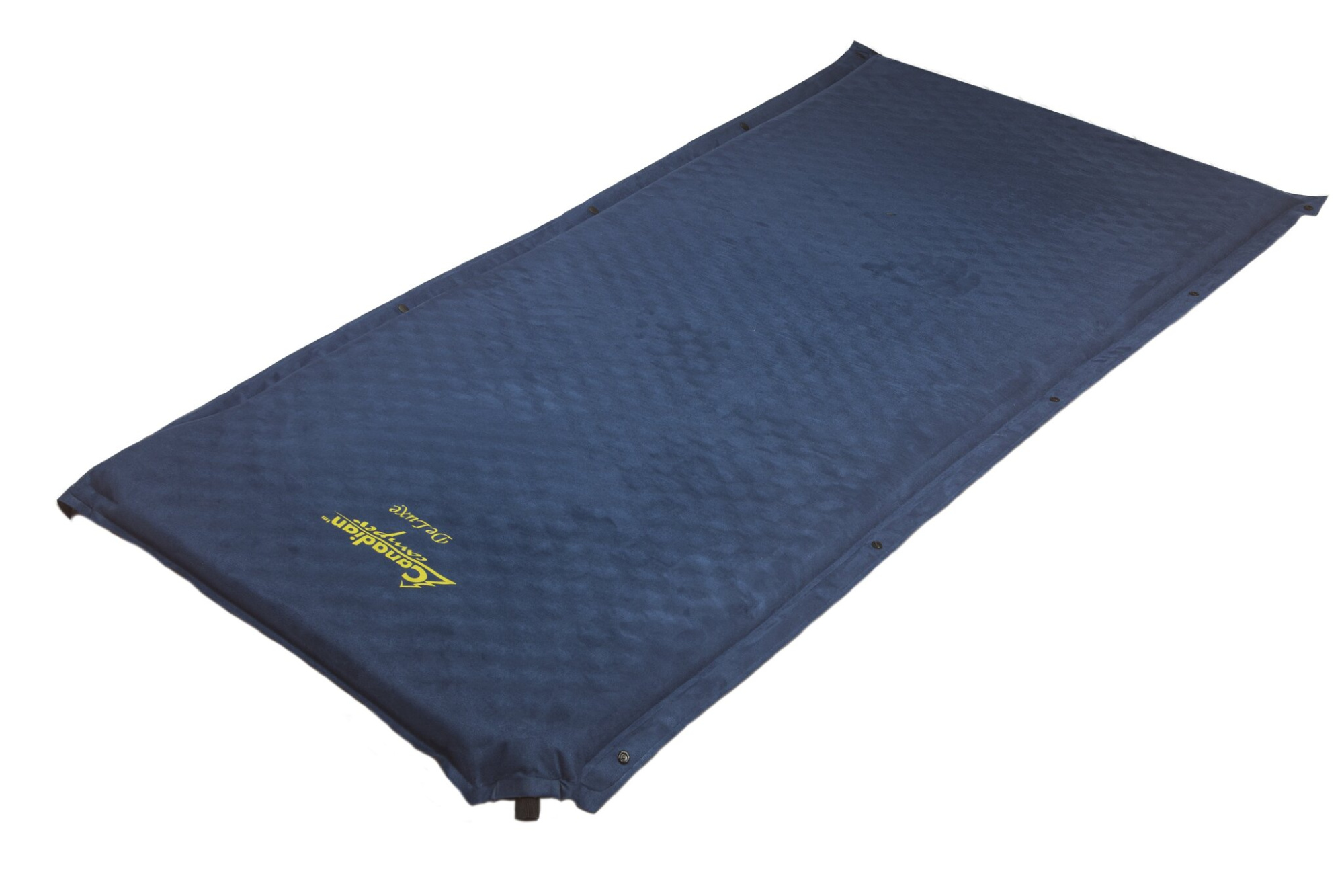 Ковёр Canadian Camper выполнен из мягкой искусственной замши Micro Suede, а нижняя сторона покрыта противоскользящим материалом — коврик не смещается во время использования. Клапан изготовлен из бронзы. По длинной стороне предусмотрены пластиковые кнопки, с помощью которых ковёр можно состегнуть с любыми самонадувающимися ковриками Canadian Camper серий Comfort и De-Lux. Размер в разложенном виде 2000×660×50 мм, вес 2,14 кг, в сложенном — 66×13 см. Максимальная нагрузка — 140 кг.