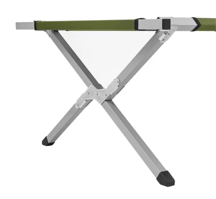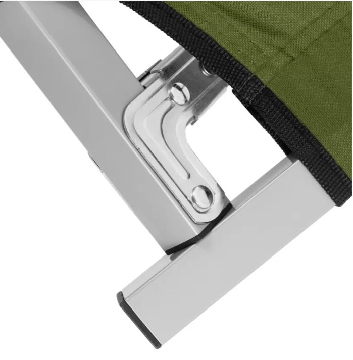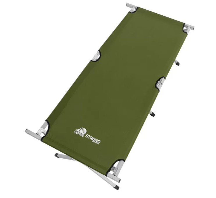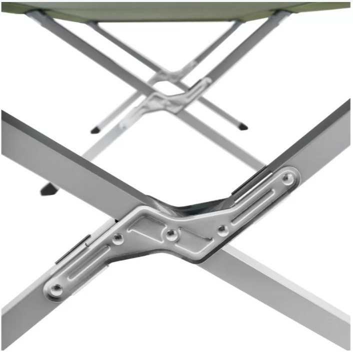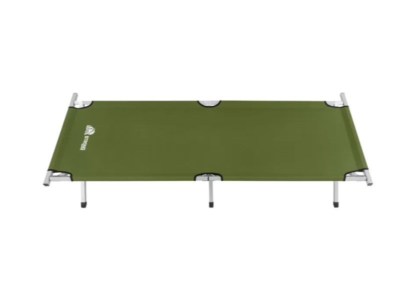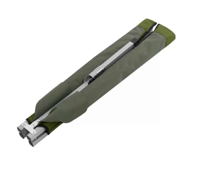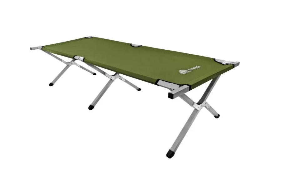 Надёжная и лёгкая раскладная кровать для отдыха на природе, в походах или на даче. Каркас выполнен из металлического профиля шириной 25 мм, что обеспечивает высокую прочность и устойчивость. Максимальная нагрузка — 140 кг. Ложе изготовлено из износостойкой ткани Oxford 600D, устойчивой к влаге и ультрафиолету. Ножки из ABS-пластика высотой 40 см обеспечивают устойчивость на любом грунте. В разложенном виде кровать имеет размер 189×64×40 см, в сложенном — 94×17×12 см. Вес всего 2,1 кг. Поставляется в тканевом чехле для удобной транспортировки и хранения. Цвет — оливково-зелёный.ХарактеристикиТип
