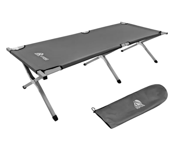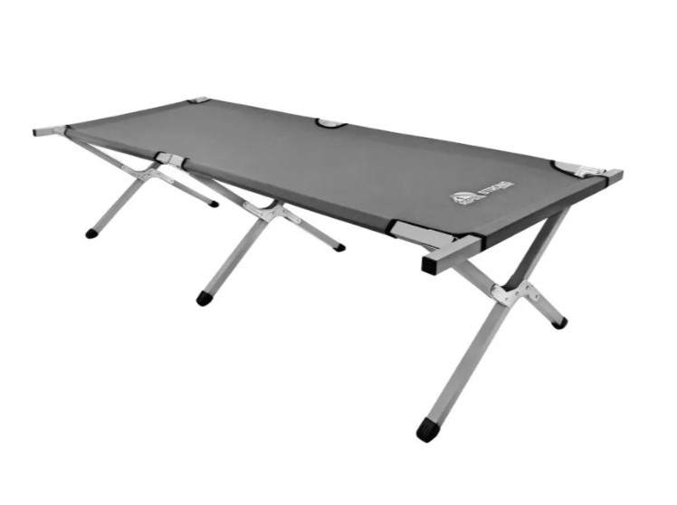 Эта раскладная кровать — удобное и лёгкое решение для отдыха на природе, в походах или на даче. Каркас выполнен из металлического профиля шириной 25 мм, что обеспечивает прочность и устойчивость даже на неровном грунте. Конструкция рассчитана на нагрузку до 140 кг. Ложе сделано из износостойкой ткани Oxford 600D — она не боится влаги, устойчива к ультрафиолету и легко очищается. Ножки из ABS-пластика высотой 40 см надёжно стоят на любом покрытии. В разложенном виде кровать имеет размер 189×64×40 см, в сложенном — 94×17×12 см, а весит всего 2,1 кг. В комплекте идёт тканевый чехол, так что переносить и хранить её очень удобно. Цвет — серый.ХарактеристикиТип