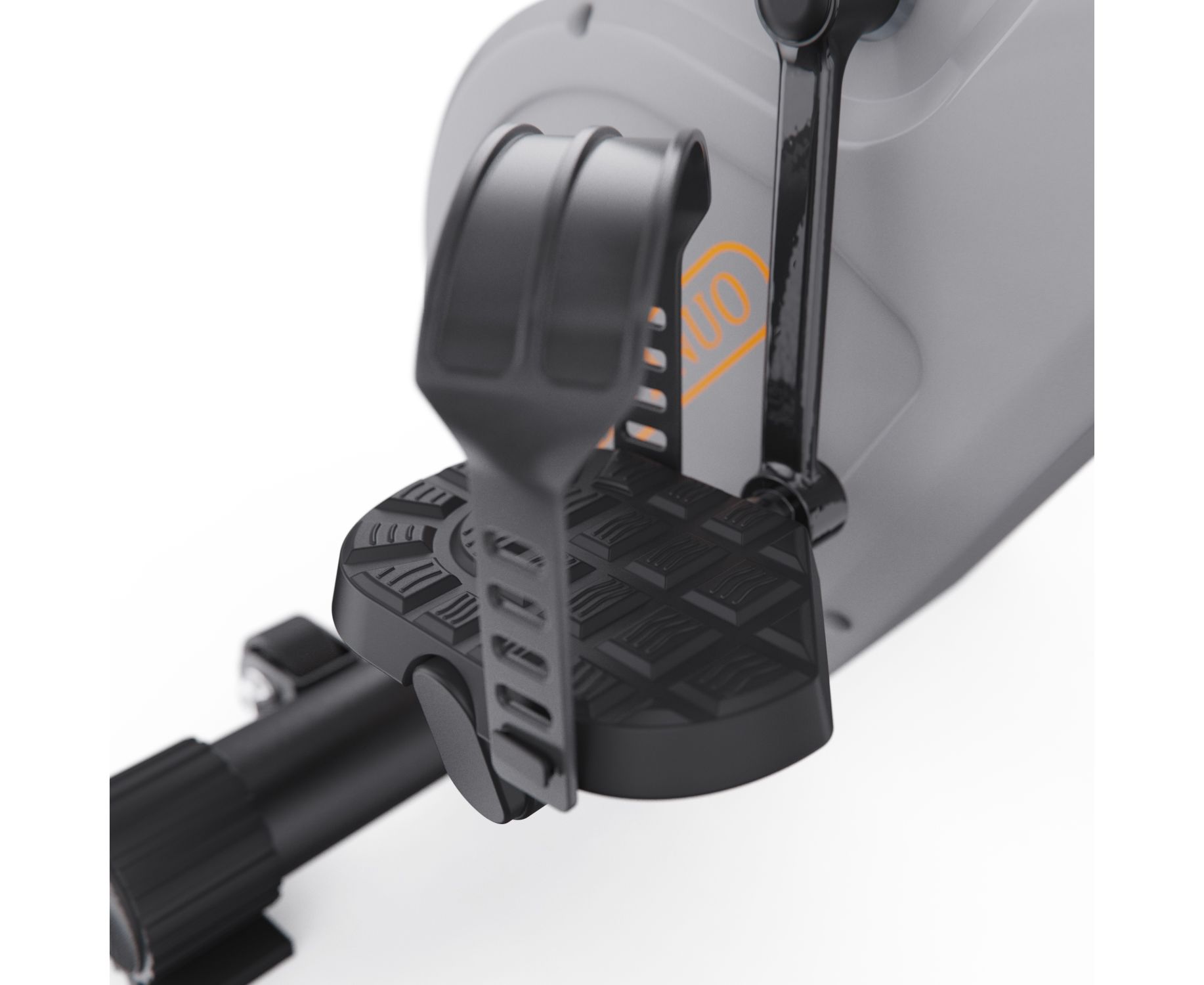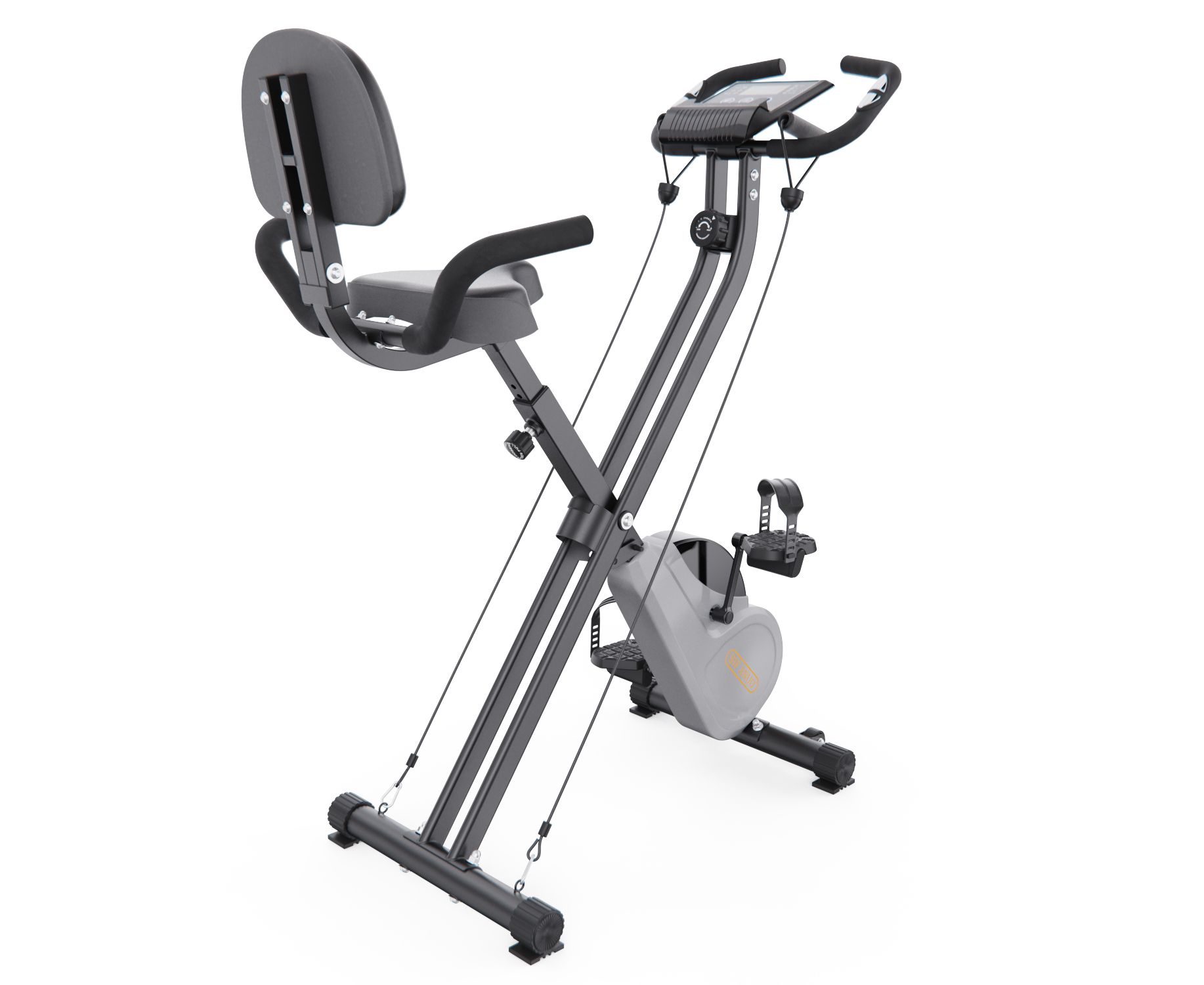 Практичная складная конструкция (33×41×134 см в сложенном виде) с транспортировочными роликами и компенсаторами неровностей пола делает тренажер удобным для хранения в небольшом помещении и устойчивой установки. Педали имеют противоскользящее покрытие и регулируемые ремешки, а подставка для планшета или смартфона позволяет разнообразить тренировки.