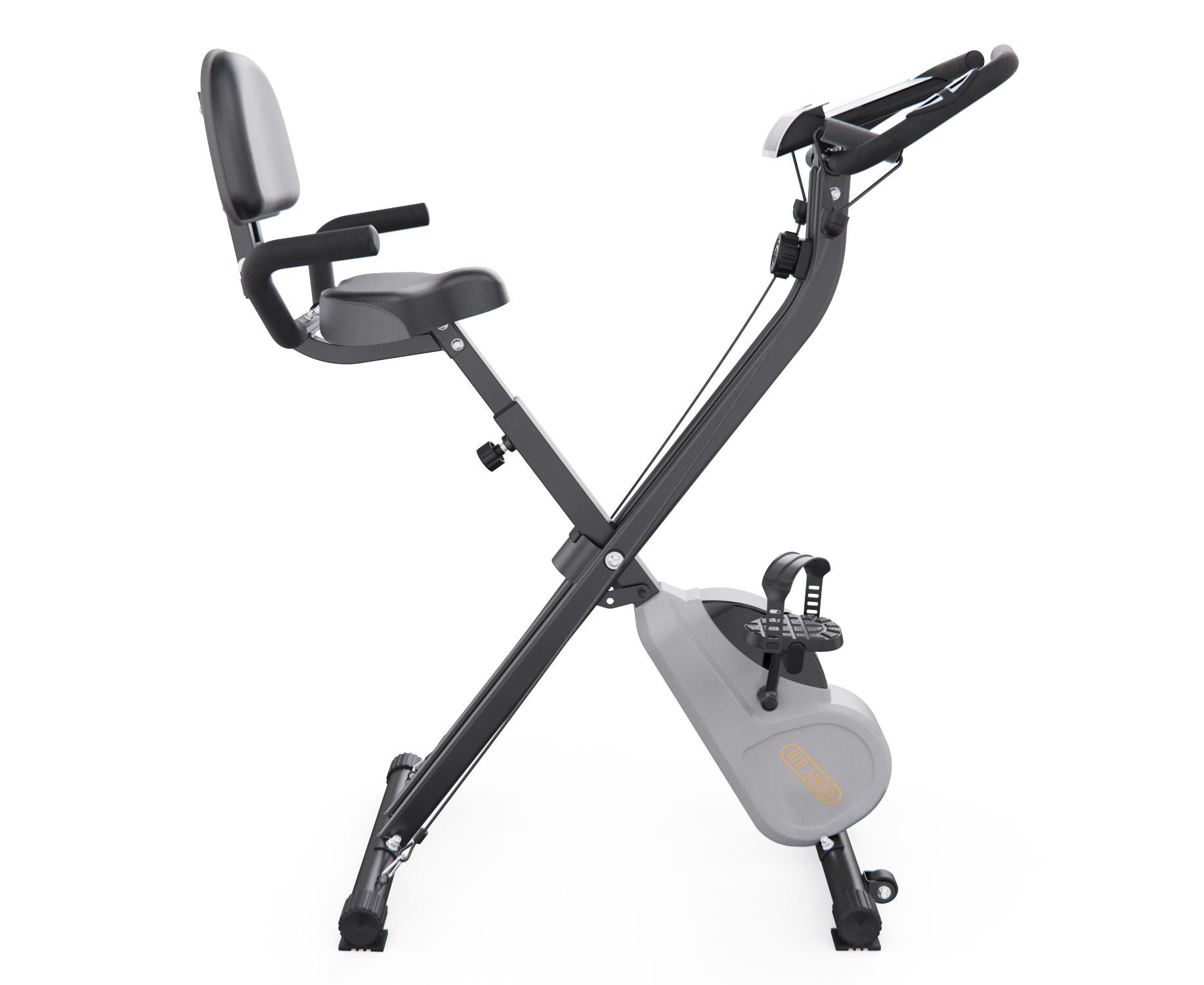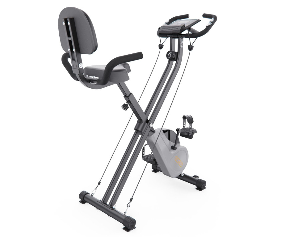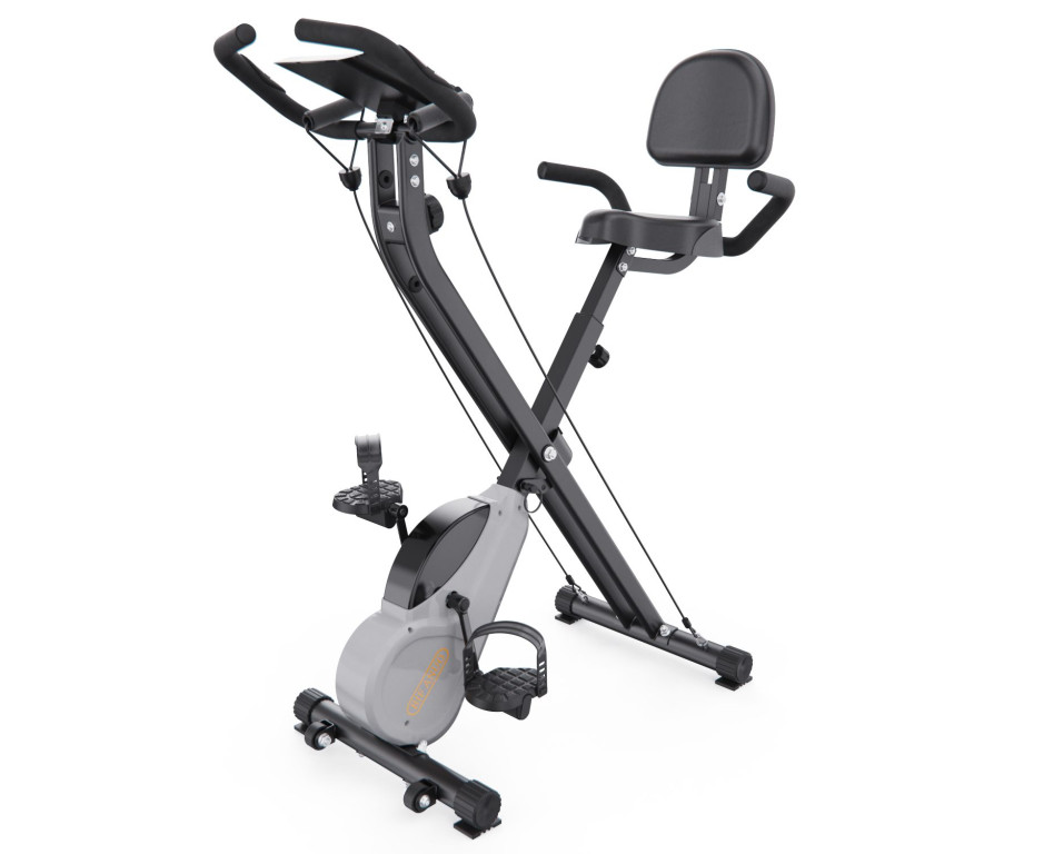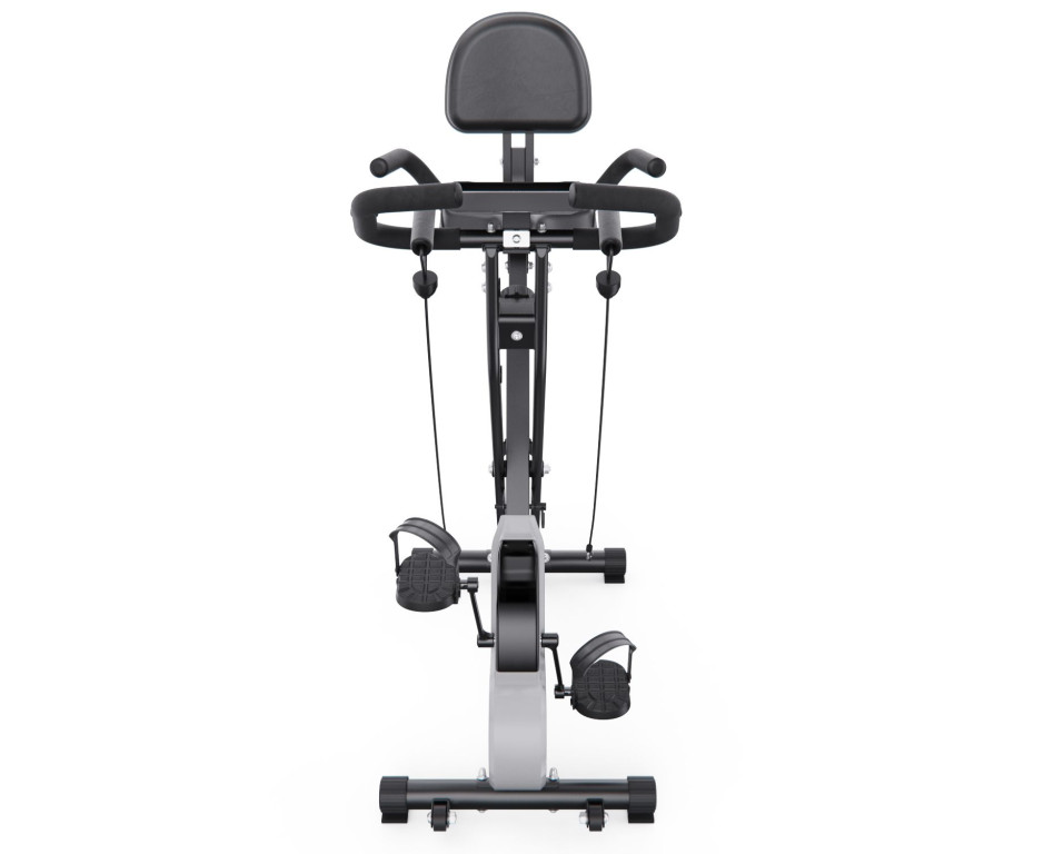 Вертикальный велотренажер DFC X-Bike BIFANUO — это компактный кардиотренажер для эффективных домашних тренировок. Он сочетает аэробную нагрузку для ног с силовой проработкой верха тела при помощи входящих в комплект эспандеров, подходит для пользователей весом до 110 кг.