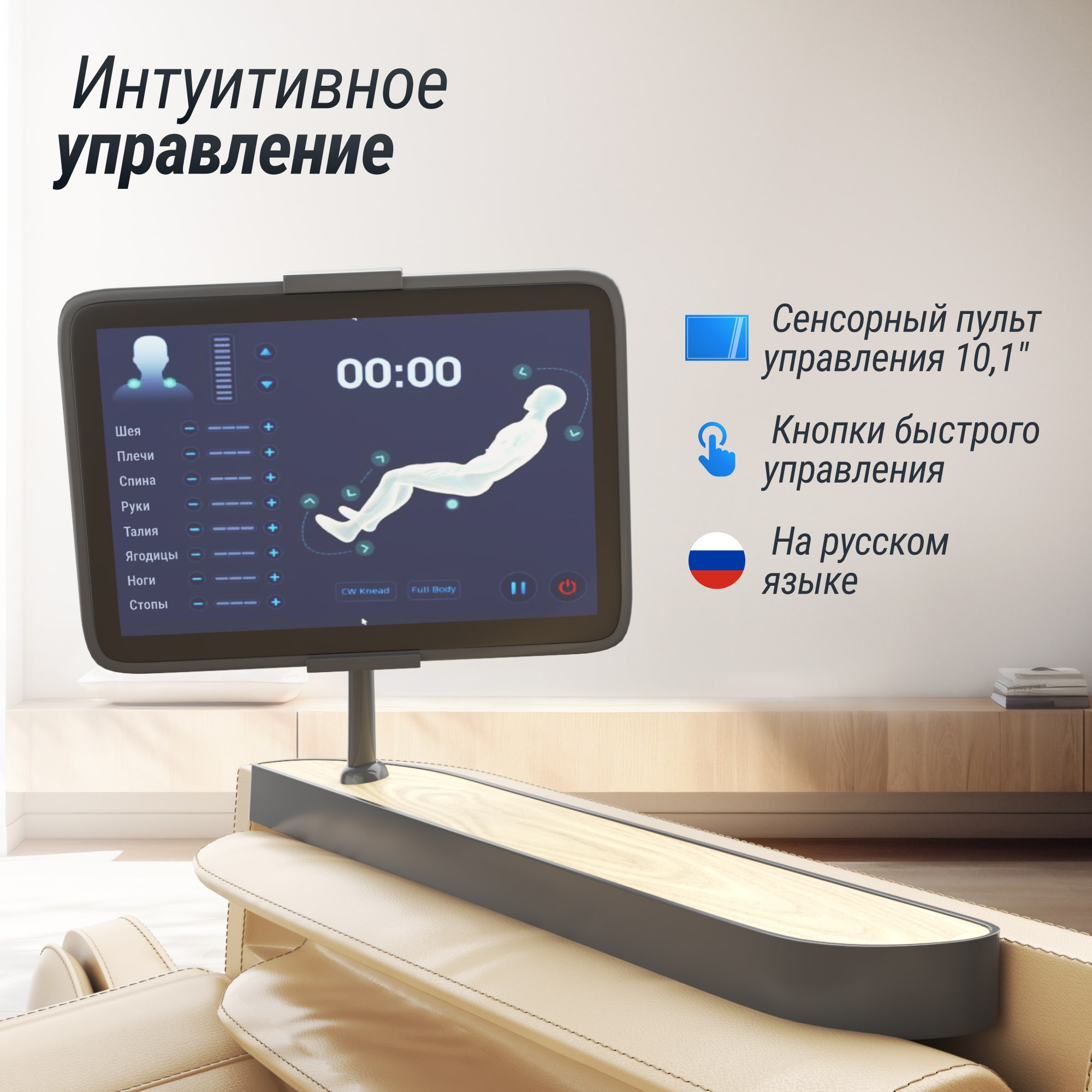 Массажное кресло обладает функцией автоматического сканирования формы тела с помощью специальных сенсорных датчиков, которые регистрируют различные параметры и создают уникальную программу массажа на основе 3D-модели человека. После анализа роста, ширины плеч, спины, талии и других изгибов, кресло настраивает ширину массажных роликов для эффективного воздействия на напряженные участки тела.