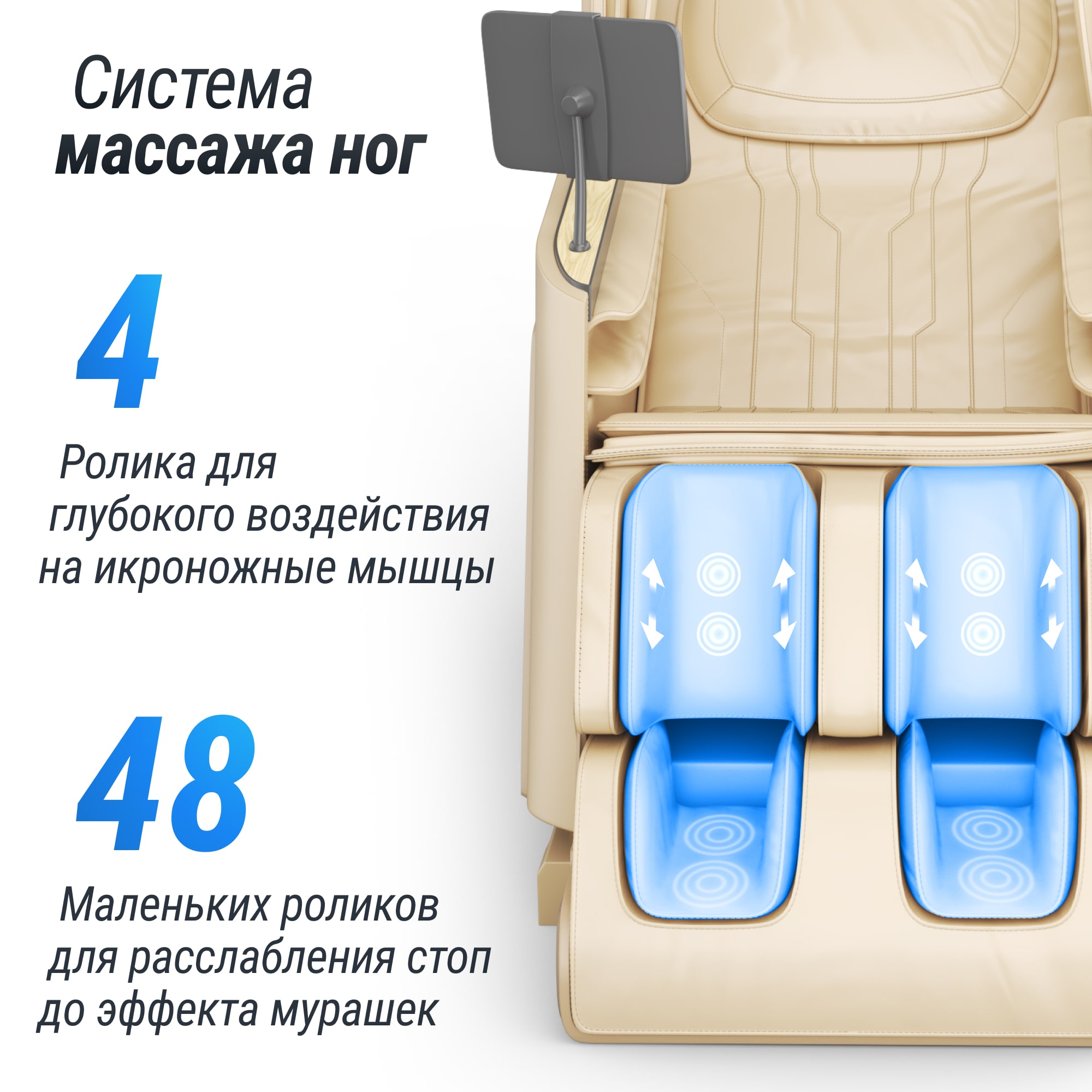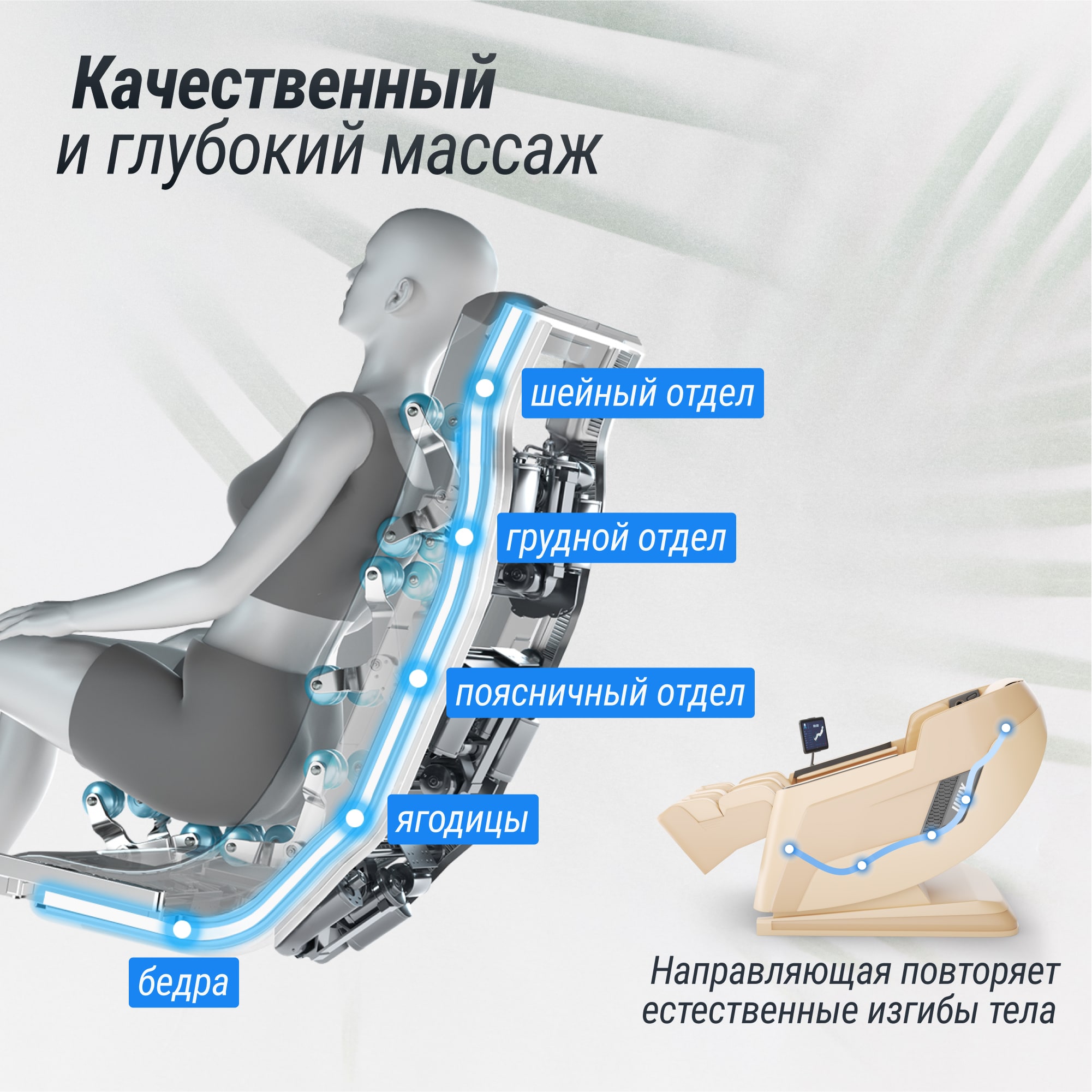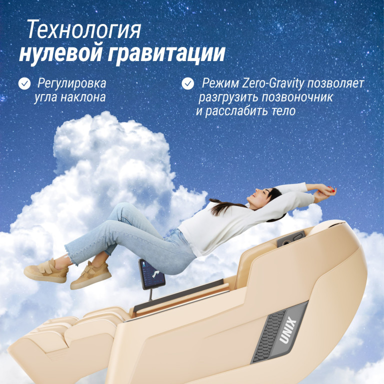 Инвестиция в массажное кресло для дома не только приведет к расслаблению, но и принесет ощутимые выгоды для вашего здоровья. Благодаря 3D массажу, точечная проработка мышц обеспечивает максимальное улучшение состояния тела и души. Этот вид массажа способен снимать стресс, помогать при головных и мышечных болях, а также улучшать сон. Движение роликов адаптировано под изгибы тела, что позволяет достичь полного расслабления и избавиться от боли в ногах и плечах. Поэтому покупка массажного кресла для дома — это вложение в ваше благополучие и здоровье! ZERO GRAVITY. В режиме ZERO-G возможно самостоятельно определить угол наклона, что равномерно распределяет нагрузку по всему телу и создает ощущение легкости, схожее с невесомостью. В этом режиме тело находится в удобном положении, что способствует максимальному расслаблению и увеличивает пользу от процедуры массажа. При невесомости нагрузка на позвоночник равномерно распределяется по поверхности кресла, что способствует снятию спазмов в мышцах и улучшению кровообращения. Это состояние также способствует восстановлению важных функций организма и улучшению качества сна. Режим ZERO-G идеально подходит для релаксации и оздоровления людей, выполняющих тяжелую физическую работу, офисных работников, спортсменов, водителей, а также для тех, кто испытывает значительные нагрузки как на работе, так и дома.