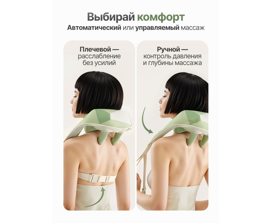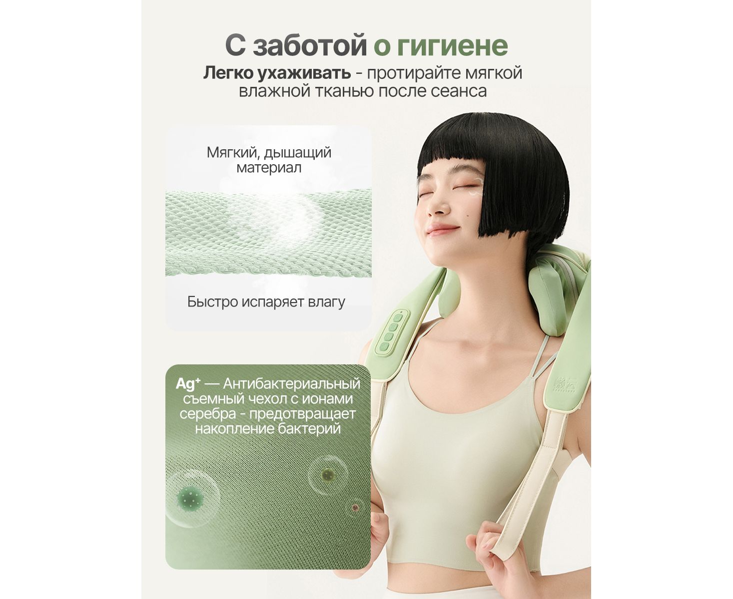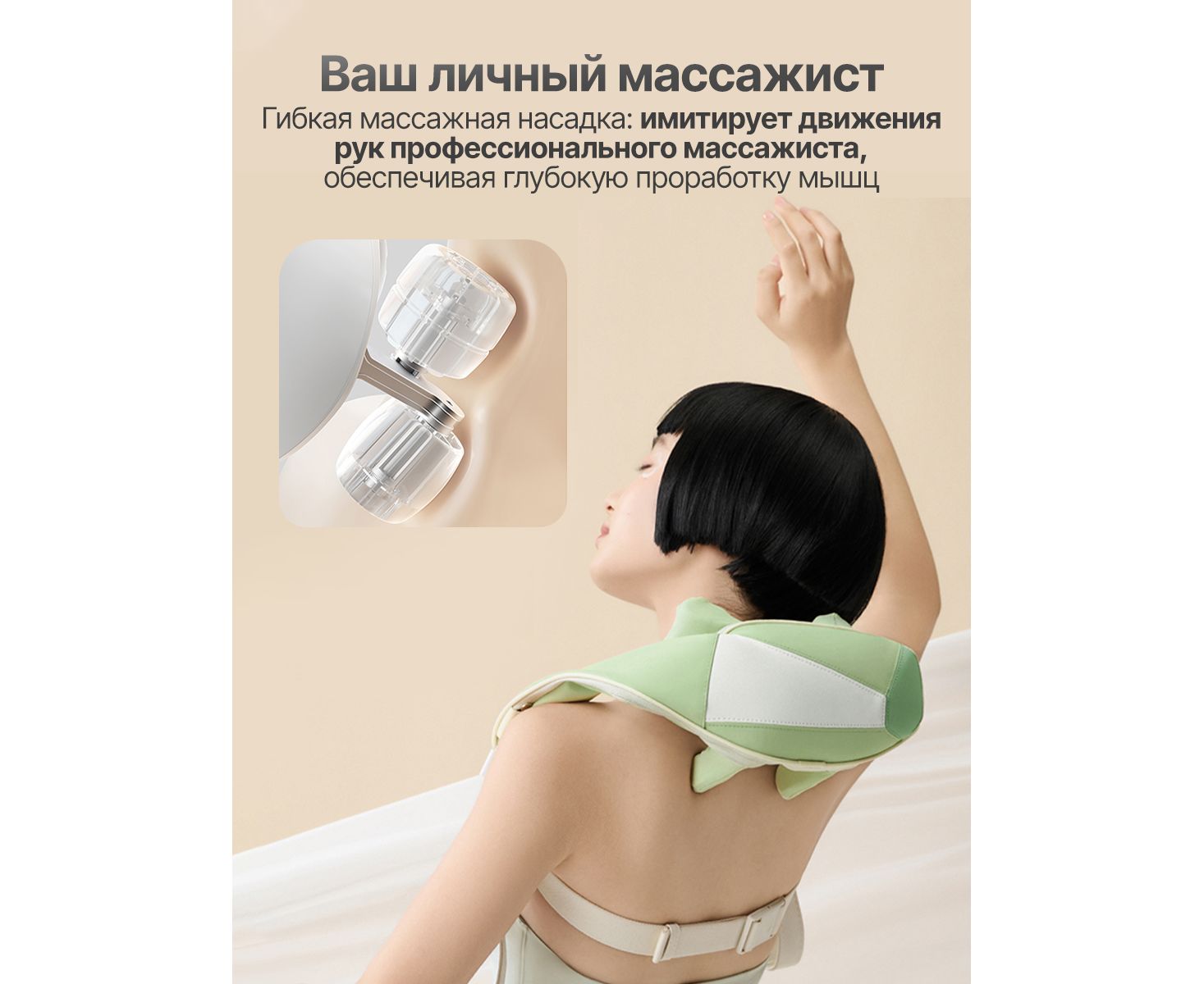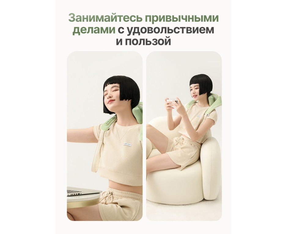 Вибромассажер DFC LAZYCLOUD VM-MA36 зелёного цвета — это беспроводное устройство для расслабления мышц плечевого пояса, шеи и спины после рабочего дня или тренировок. Модель сочетает в себе технологии вибрации, прогрева и эргономичный дизайн.