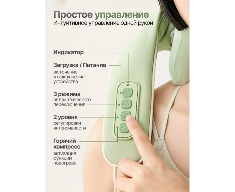 Управление: Панель управления с несколькими режимами и уровнями интенсивности массажа.