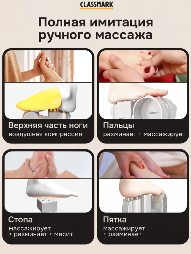 Роликовый массажер для стоп Classmark предназначен для снятия боли, усталости и тяжести в ногах после рабочего дня или интенсивных нагрузок. Устройство имитирует движения рук массажиста, воздействуя на акупунктурные точки по методике шиацу. Это способствует нормализации кровообращения и служит профилактикой варикозного расширения вен.