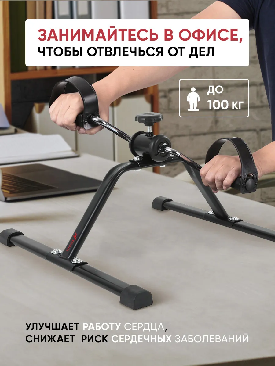 Ритм жизни современного человека с плотным графиком почти не оставляет времени на фитнес в спортивном зале и прогулки. Идеальным решением станет аналог велосипеда в упрощенной форме - педальный велотренажер. Компактный спортивный тренажер для дома не займет много места. Велотренажер для дома тренирует ослабленные мышцы, улучшает кровообращение. Педальные реабилитационные тренажеры нередко используют для разработки рук и ног у людей с ограниченными физическими возможностями - пациентов в процессе реабилитации, инвалидов, пожилых пользователей. Предусмотрена простая механическая регулировка нагрузки. Складной велотренажер удобно хранить дома или на даче и легко переносить. Мини велотренажер сделает тренировку приятной и эффективной. При занятии обязательно использовать стул. Нельзя вставать на мини-велотренажер всем весом во избежание травм. Минивелотренажер кардио силовой поможет вам восстановиться при реабилитации. Он удобный и легкий в использовании. Педальная система для ног и рук. Этот велосипед мини полезное средство для фитнеса и спортивной тренировки, так как помогает развивать силу рук и здоровье ног, а также поддерживает хорошую форму. Простой механический дизайн позволяет легко поддерживать тренировки в домашних условиях. Спортивная система обеспечивает полезную реабилитацию. Если вы ищете полезный спортинвентарь для мышц рук и ног, велотренажер мини для вас. Складной и легкий в использовании, он поможет вам в фитнесе и реабилитации после операции. Универсальный тренажор имеет механическую систему, которая позволяет вам тренировать руки и ноги одновременно. Используйте лфк инвентарь для укрепления мышц и суставов, улучшения кровообращения и силы, а также для похудения женщин и мужчин. На этом домашнем тренажёре вы можете выбрать направление вращения педалей и скорость вращения. Наслаждайтесь вашими тренировками в домашних условиях или в офисе!• ВНИМАНИЕ! • В связи с ребрендингом производителя товар поставляется под новым брендом «Willman» вместо «Classmark»