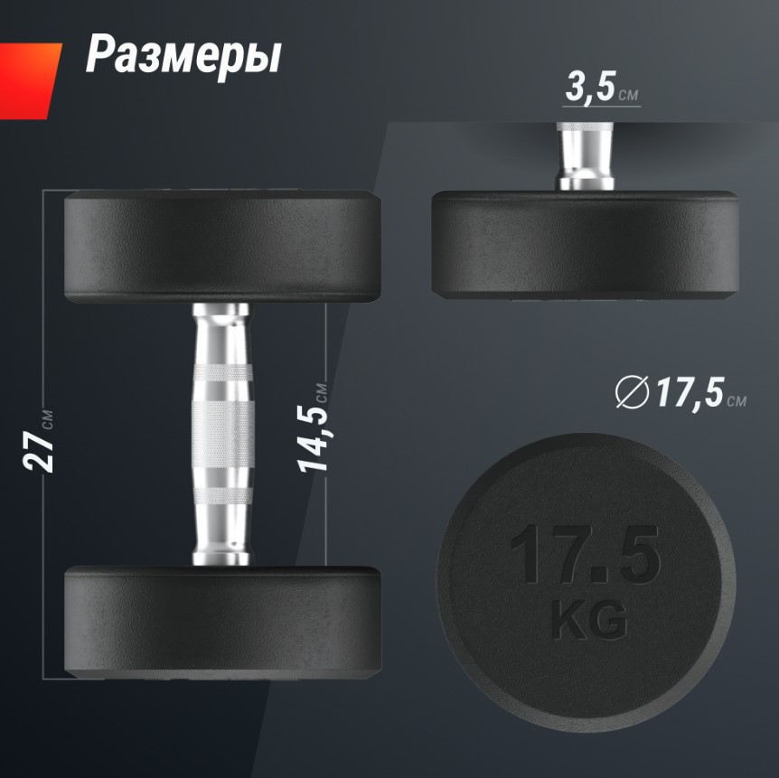 Гантели подходят для различных категорий людей. Для профессиональных спортсменов это отличное средство для контроля нагрузки и оценки качества материала. Любители фитнеса смогут увеличивать свою выносливость и силу, используя этот инвентарь. Женщины могут создавать подтянутые мышцы и формировать красивую фигуру с помощью гантелей. Для всех, кто заботится о здоровье, регулярные тренировки с гантелью улучшат самочувствие, укрепят сердечно-сосудистую систему и увеличат уровень энергии.*ХарактеристикиВес кг.17.5 ВидОбрезиненные Страна БрендаГермания Тип гантелиНабор Форма гантелиКруглая ПокрытиеРезина ОсобенностьНескользящее покрытие Диаметр35 мм Материал грифаХромированная сталь Материал дискаОбрезиненный Материалсталь марки 45# Длина хвата14.5 см Особенностьпротивоскользящие насечки по всей длине грифа ГабаритыВысота 27 см, Диаметр дисков 17.5 см Размер упаковки в см (Д*Ш*В)27 х 35 х 17,5 см Количество в комплекте2 Вес изделия кг35 Гарантия2 года ПроизводительКитай ИмпортерООО "Централ Спорт" г. Минск 220012, ул.Чернышевского 8 каб. 23 -