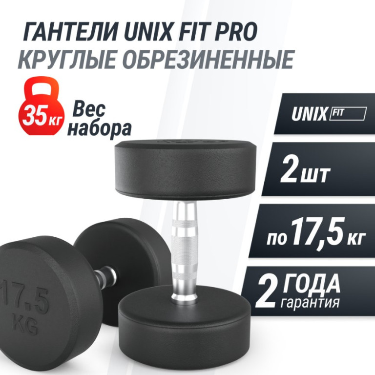 Набор прорезиненных гантелей с круглыми дисками UNIX Fit (17.5 кг, 2 шт)