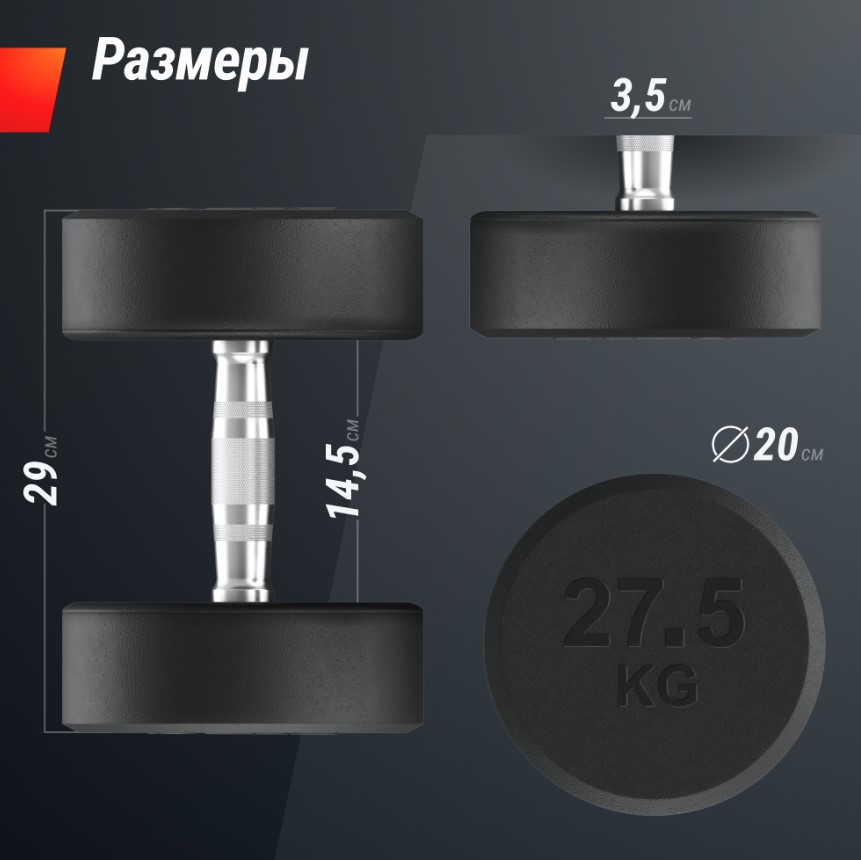 Гантели подходят для различных категорий людей. Для профессиональных спортсменов это отличное средство для контроля нагрузки и оценки качества материала. Любители фитнеса смогут увеличивать свою выносливость и силу, используя этот инвентарь. Женщины могут создавать подтянутые мышцы и формировать красивую фигуру с помощью гантелей. Для всех, кто заботится о здоровье, регулярные тренировки с гантелью улучшат самочувствие, укрепят сердечно-сосудистую систему и увеличат уровень энергии.*ХарактеристикиВес кг.27.5 ВидОбрезиненные Страна БрендаГермания Тип гантелиНабор Форма гантелиКруглая ПокрытиеРезина ОсобенностьНескользящее покрытие Диаметр35 мм Материал грифаХромированная сталь Материал дискаОбрезиненный Материалсталь марки 45# Длина хвата14.5 см Особенностьпротивоскользящие насечки по всей длине грифа ГабаритыВысота 29 см, Диаметр дисков 20 см Размер упаковки в см (Д*Ш*В)29 х 40 х 20 см Количество в комплекте2 Вес изделия кг55 Гарантия2 года ПроизводительКитай ИмпортерООО "Централ Спорт" г. Минск 220012, ул.Чернышевского 8 каб. 23 -