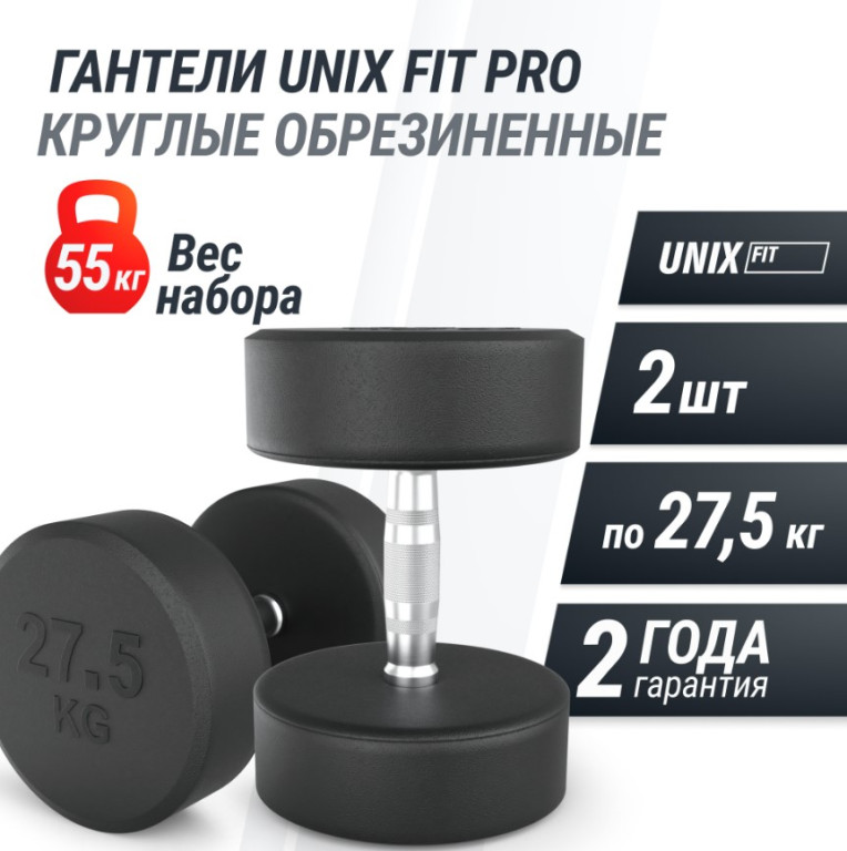 Набор прорезиненных гантелей с круглыми дисками UNIX Fit (27.5 кг, 2 шт)