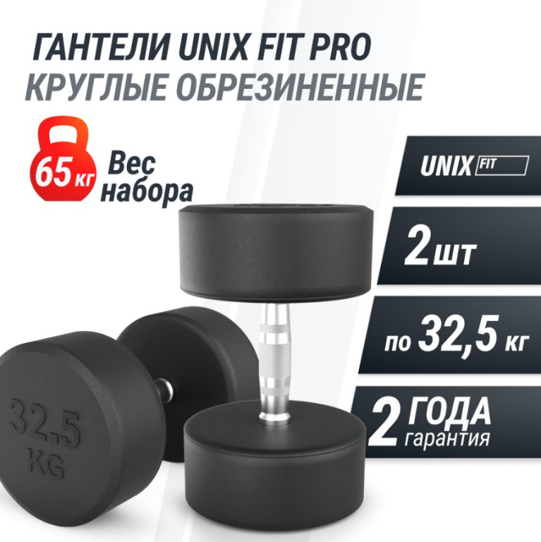 Набор прорезиненных гантелей с круглыми дисками UNIX Fit (32.5 кг, 2 шт)