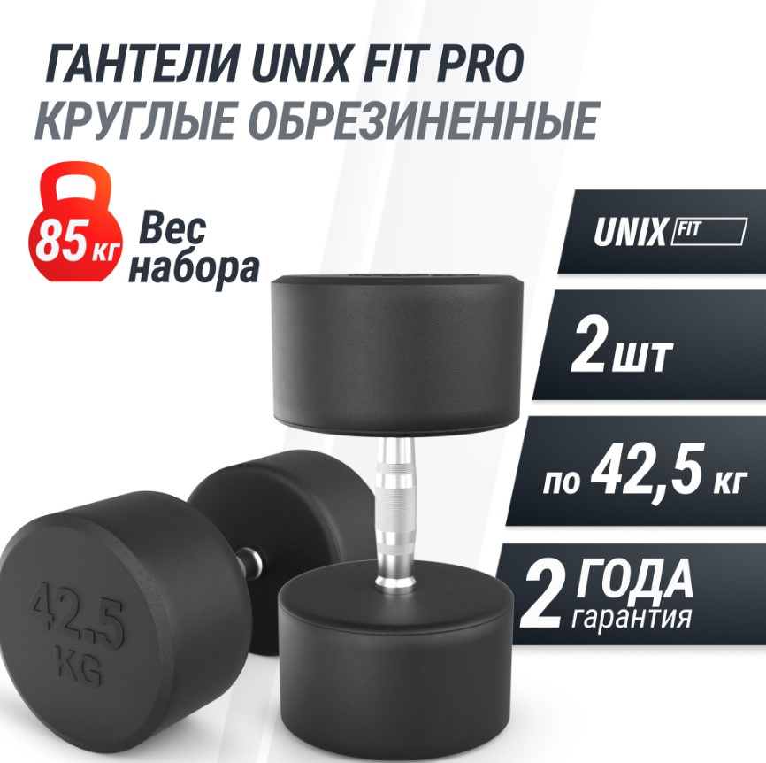 Набор прорезиненных гантелей с круглыми дисками UNIX Fit (42.5 кг, 2 шт)