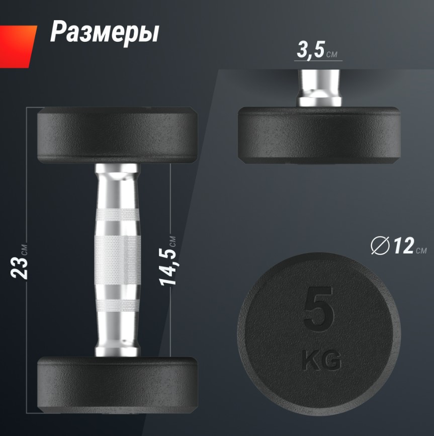Устойчивость к ударам и падениям обеспечивается прочным обрезиненным покрытием, которое защищает гантели от коррозии и повреждений. Гарантия долгой службы обеспечивается литой сталью, сохраняющей свои свойства годами. Этот спортивный инвентарь идеально подходит для занятий как в домашних условиях, так и в профессиональных залах. Безопасный хват и комфорт. Надежный хват во время тренировок обеспечивается рифленым покрытием рукоятки. Благодаря этому вы сможете контролировать движения во время упражнений на плечи, руки, спину и пресс, не боясь соскальзывания. Ваше здоровье и комфорт важны для нас. Разнообразие тренировок.