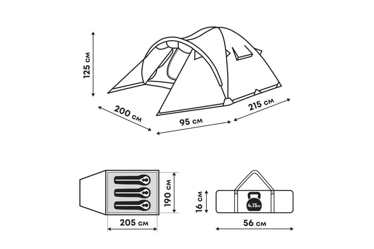 Палатка RSP Deep 3 — трехместная треккинговая модель, подходящая для походов средней сложности и семейного отдыха на природе в любое время года. Благодаря небольшому весу и компактным размерам в сложенном виде она удобна для пеших, велосипедных и мотоциклетных путешествий.