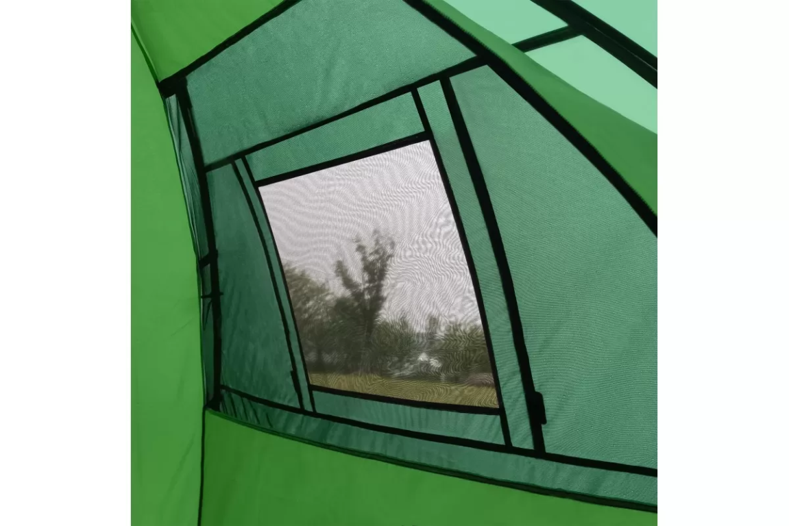 В спальне размещены карманы для вещей и крючок для фонаря. Вход и вентиляционные окна продублированы мелкой москитной сеткой, обеспечивающей защиту от насекомых и хорошую вентиляцию. Молнии и бегунки качественные, легкие в использовании.