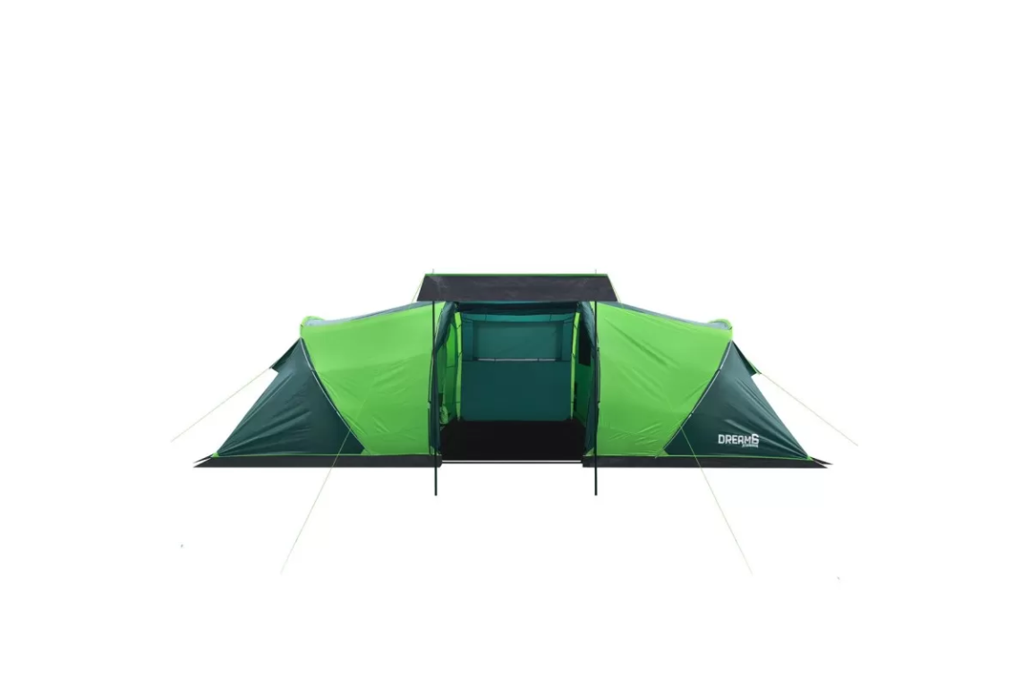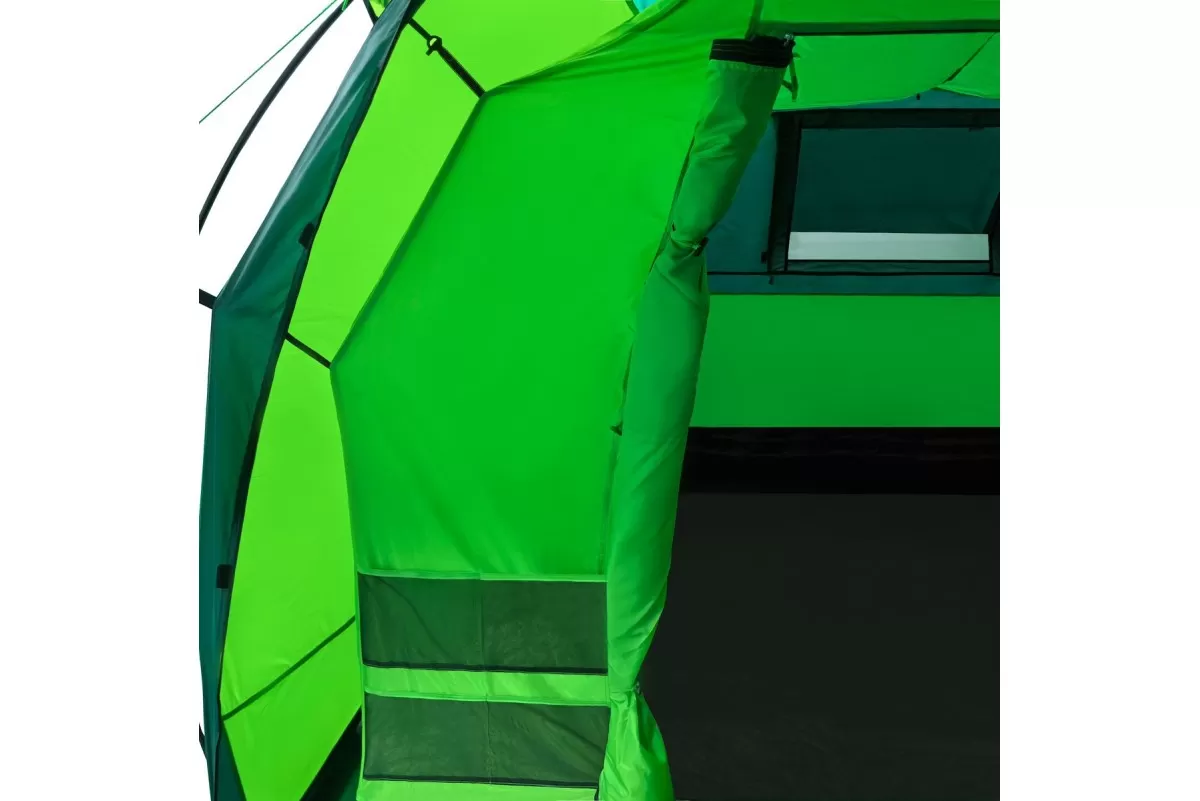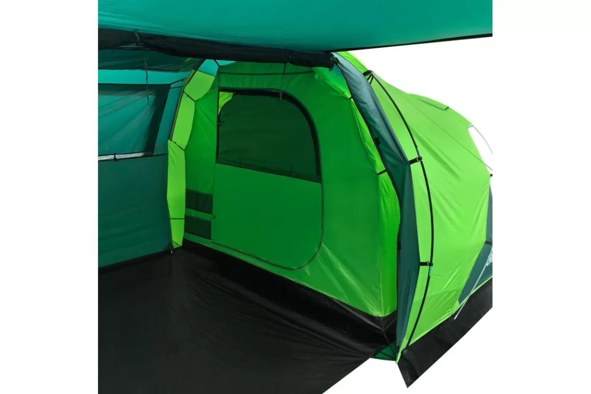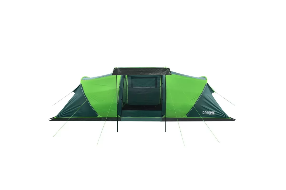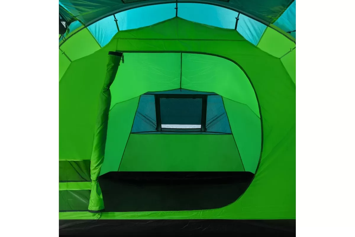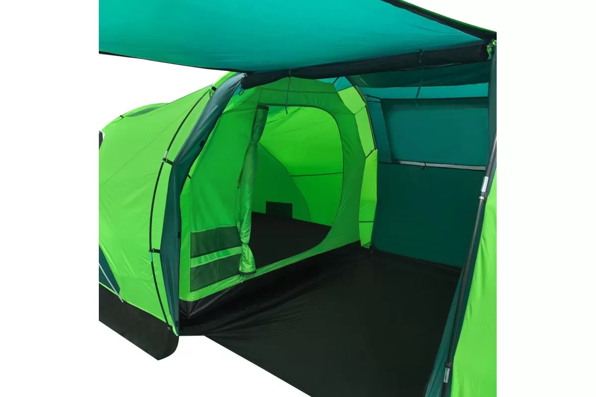 Если вы ищете палатку для долгих стоянок на природе — присмотритесь к RSP Dream 6. Шесть спальных мест, два отдельных спальных отсека и здоровенный тамбур посередине. Тамбур, кстати, не для галочки: 160 на 230 см при высоте почти два метра (195 см) — сюда влезет складной столик, стулья, и ещё куча барахла по углам. Вечером можно сидеть внутри компанией и не упираться головой в потолок.