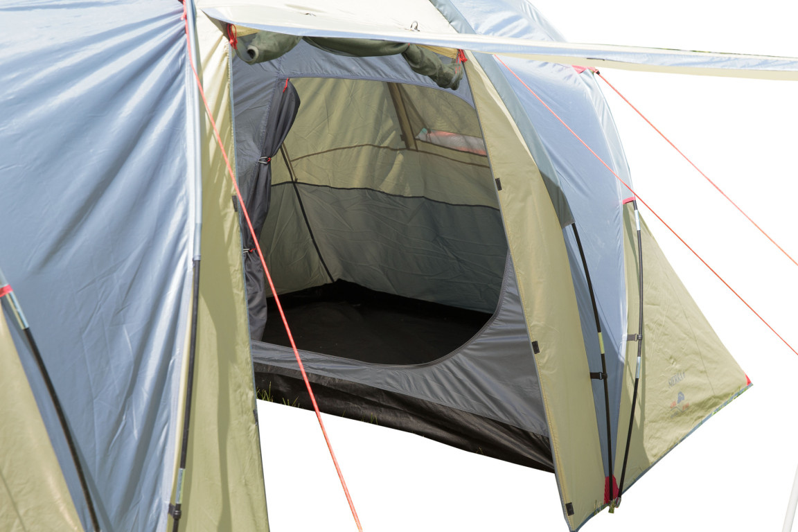 Новая четырёхместная палатка SIERRA от бренда INDI (Indiana) — это модель с двумя спальнями и большим тамбуром между ними. Спальни выполнены подвесными: при желании одну или обе можно снять, превратив тамбур в просторную общую зону для большой компании. Конструкция продумана так, чтобы палатка уверенно держалась даже при ветре.ХарактеристикиТип