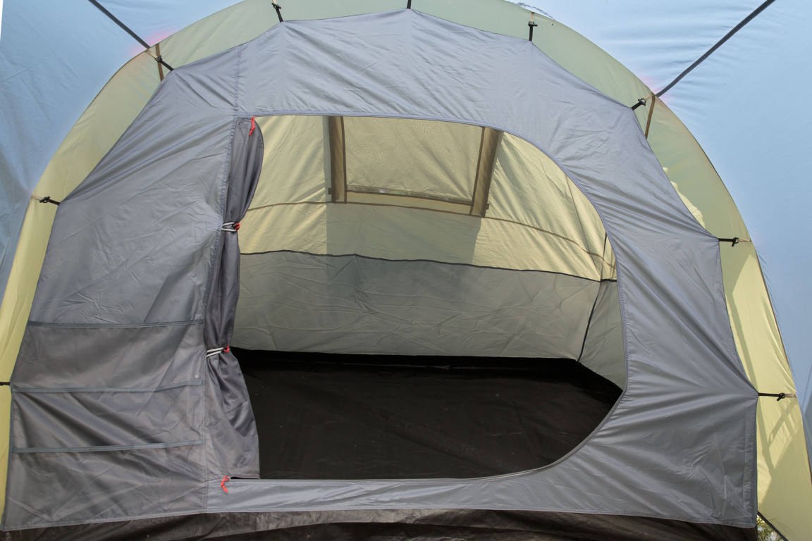 Новая шестиместная палатка SIERRA от бренда INDI (Indiana) — это модель с двумя спальнями и большим тамбуром между ними. Спальни сделаны подвесными: если нужно, одну или обе можно снять, превратив тамбур в общую зону для большой компании. Палатка спроектирована так, чтобы уверенно держаться даже при ветре.