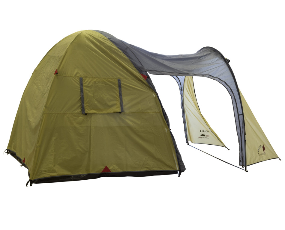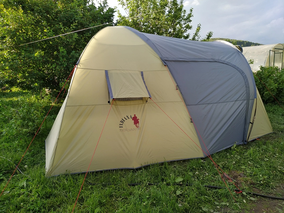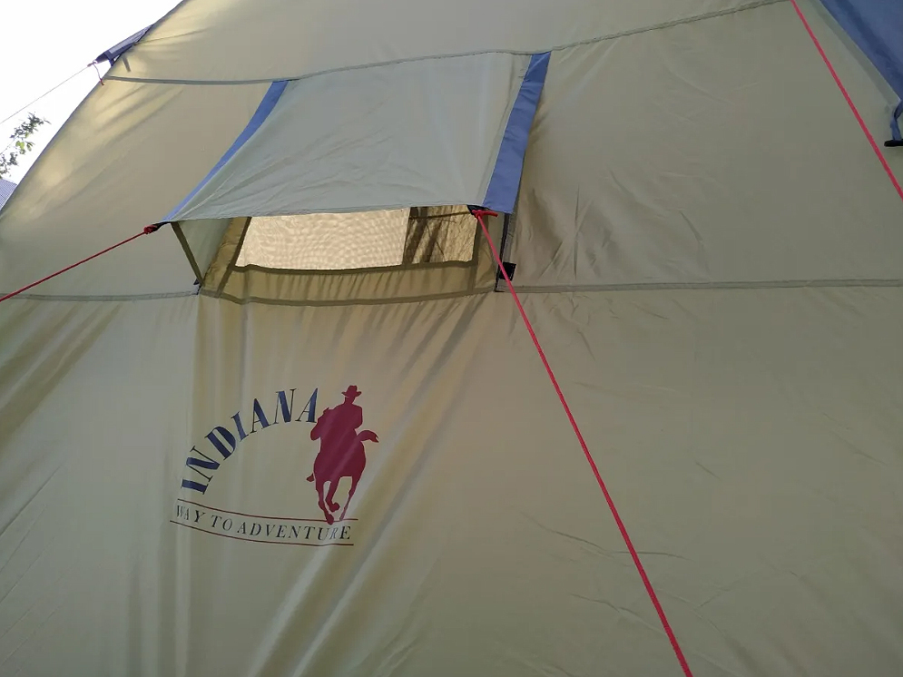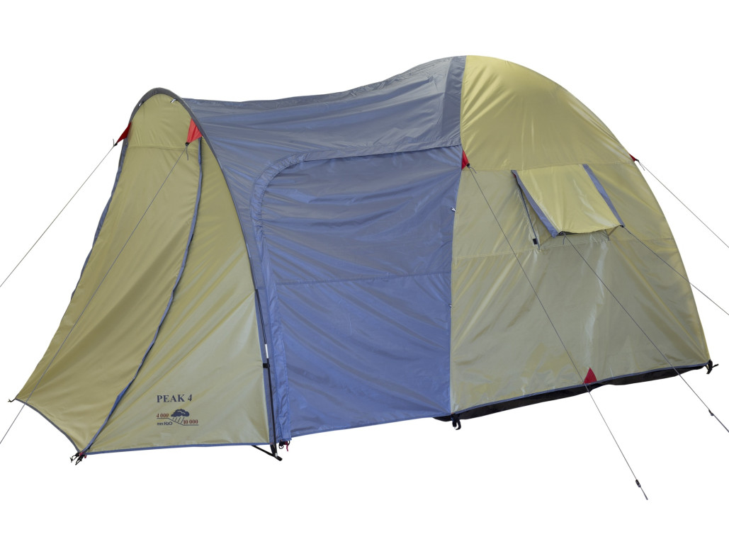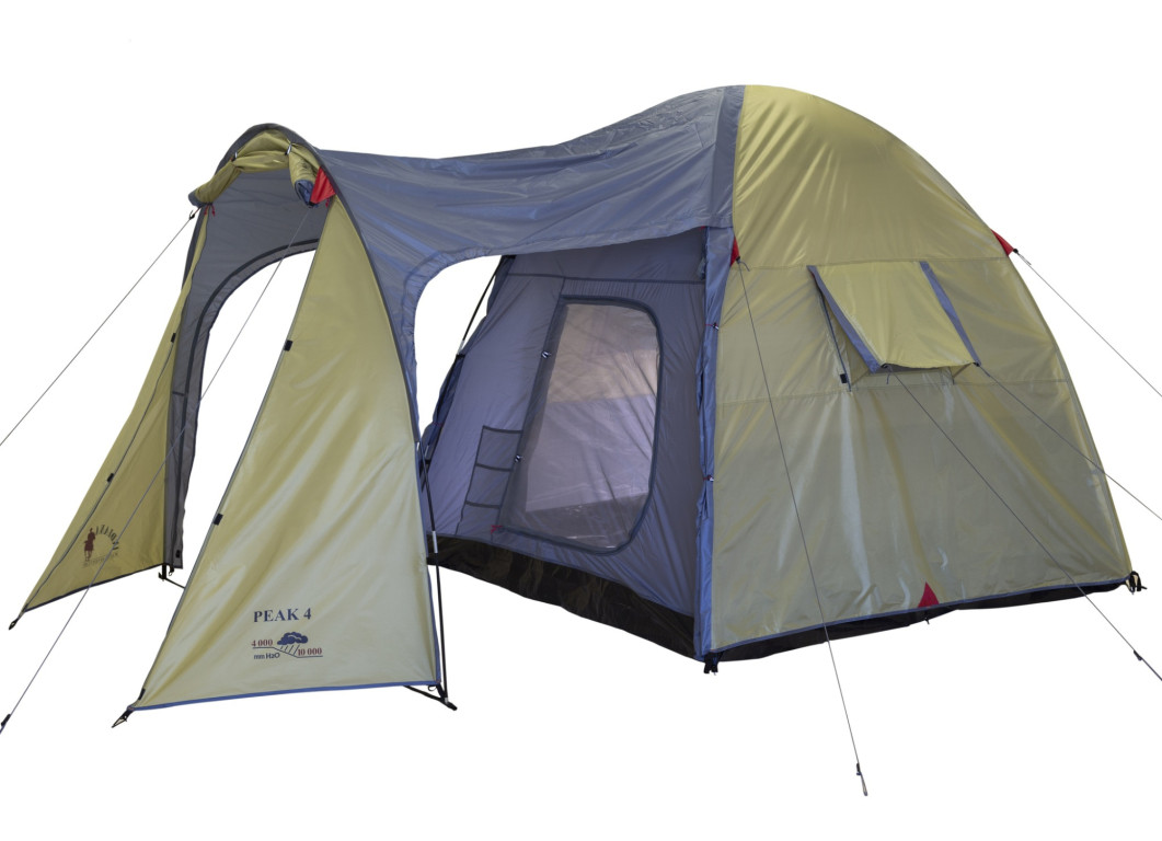 Палатка Indiana Peak 4 — это вместительная четырёхместная модель для отдыха большой компанией или семьёй. Вход в тамбур возможен с трёх сторон, а сам тамбур достаточно просторный, чтобы хранить вещи, ставить походную мебель и даже небольшую туристическую кухню. Внутри палатки можно стоять в полный рост — это заметно повышает комфорт при длительной стоянке.