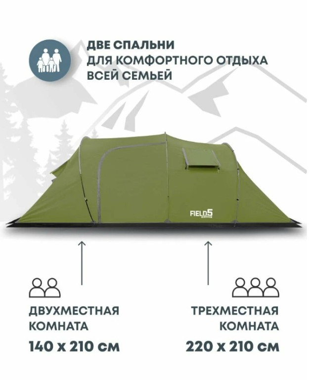 Если вам нужна палатка, в которой можно стоять в полный рост и комфортно отдыхать в любое время года, стоит присмотреться к RSP Field 5. Это большая двухкомнатная палатка с тамбуром, разработанная для продолжительных выездов и семейного кемпинга. Она сочетает высокое качество материалов, продуманную эргономику и возможность трансформации под разные сценарии.
